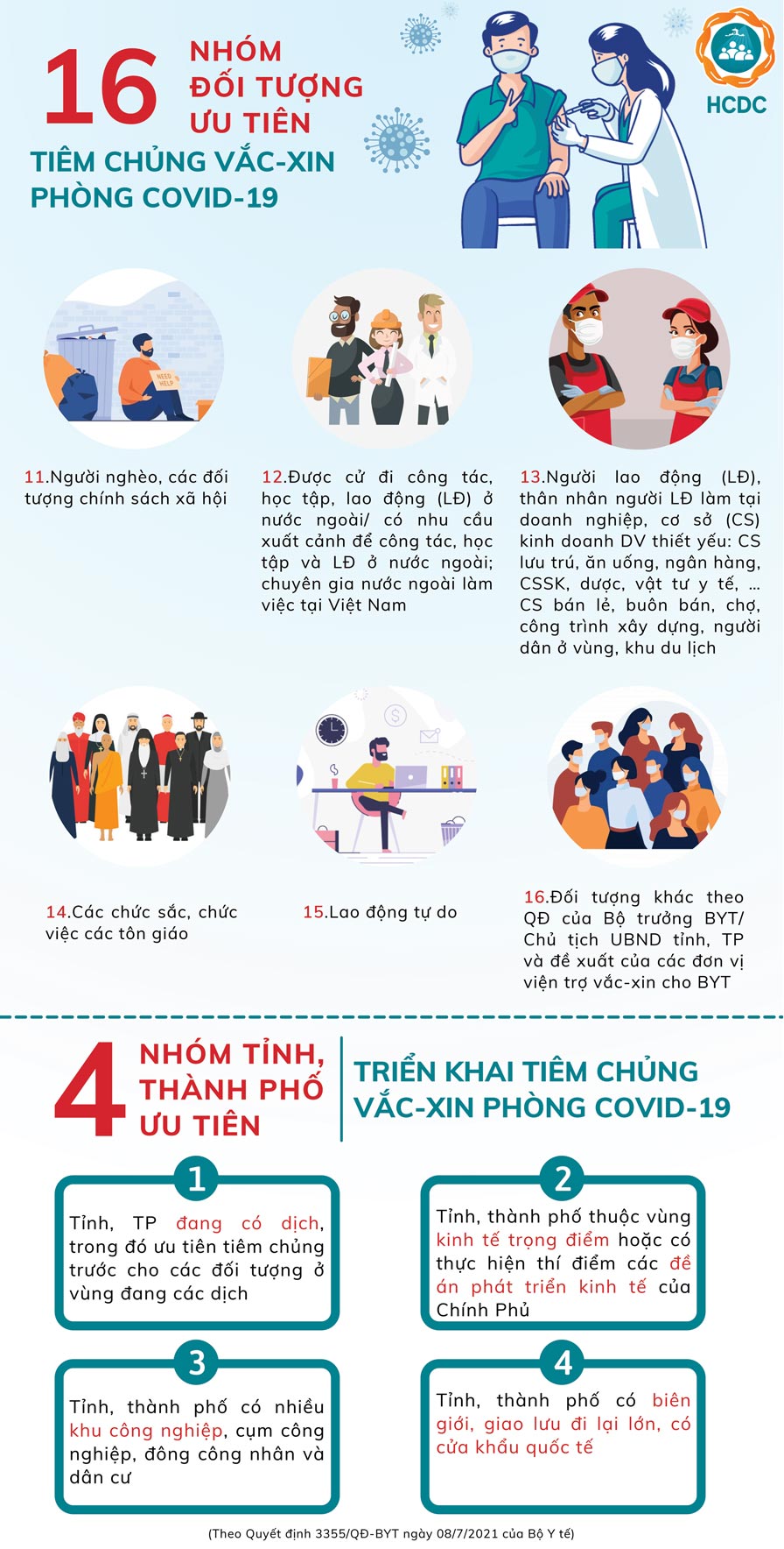 – Các tỉnh, thành đang có dịch, trong đó ưu tiên tiêm trước cho đối tượng ở vùng đang có dịch.