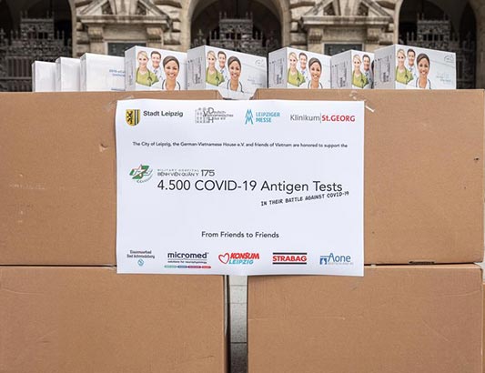 Đợt viện trợ này được đích thân Ngài Thị trưởng đã chỉ đạo và giao đầu mối là Tổ chức Ngôi nhà Đức – Việt để kêu gọi, vận động các đối tác, doanh nghiệp ủng hộ kinh phí. Dự kiến, 4.500 bộ kit xét nghiệm nhanh COVID-19 sẽ được chuyển tới Bệnh viện Quân y 175 trong tuần đầu tháng 06/2021. Đây là bộ kit được sử dụng trong chiến lược xét nghiệm quốc gia của Đức và được lưu hành rộng rãi tại Đức và các nước châu Âu, do Nadal – đối tác của Bộ Y tế Đức sản xuất. Bệnh viện Quân y 175 sẽ là đơn vị y tế đầu tiên sử dụng bộ kit xét nghiệm nhanh tiêu chuẩn châu Âu, góp phần tăng cường năng lực phòng chống dịch COVID-19 của đơn vị cũng như hỗ trợ hệ thống y tế của TP. HCM và khu vực.