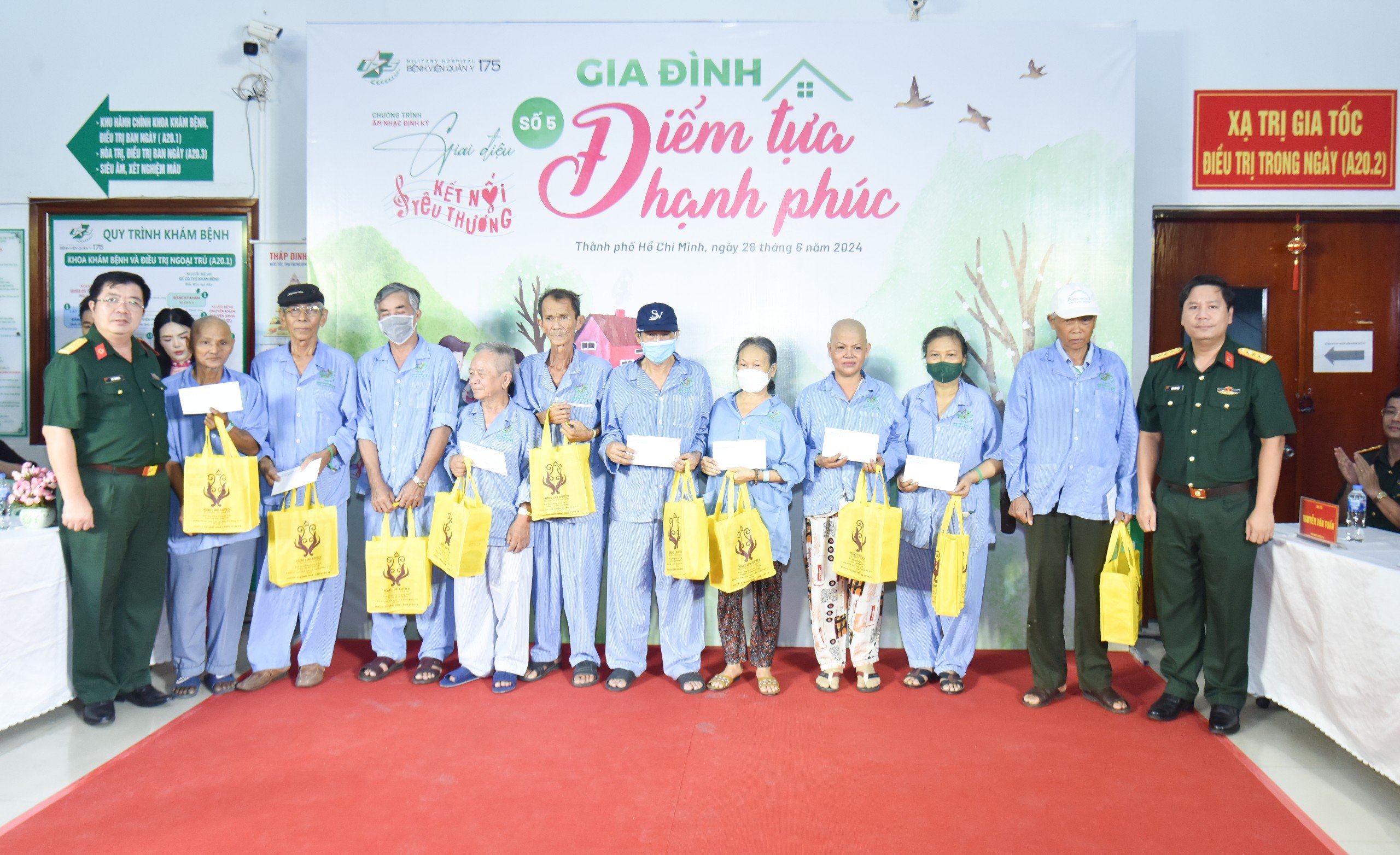 Chương trình “Giai điệu kết nối yêu thương” do Ban Truyền thông – Marketing, phòng Chính trị phối hợp cùng Viện Ung bướu và Y học hạt nhân, Ban Công tác xã hội, Ban Tuyên huấn và Tổ chức quần chúng Bệnh viện Quân y 175 đồng tổ chức, trở thành món quà tinh thần ý nghĩa dành tặng bệnh nhân, người nhà bệnh nhân, các y, bác sĩ của bệnh viện. Chương trình đã trao hơn 200 phần quà đến các bệnh nhân, trong đó có 30 phần quà đặc biệt, mỗi phần quà trị giá 1 triệu đồng, gồm tiền mặt và hiện vật dành cho 30 bệnh nhân có hoàn cảnh khó khăn đang điều trị dài ngày tại Viện Ung bướu và Y học hạt nhân.