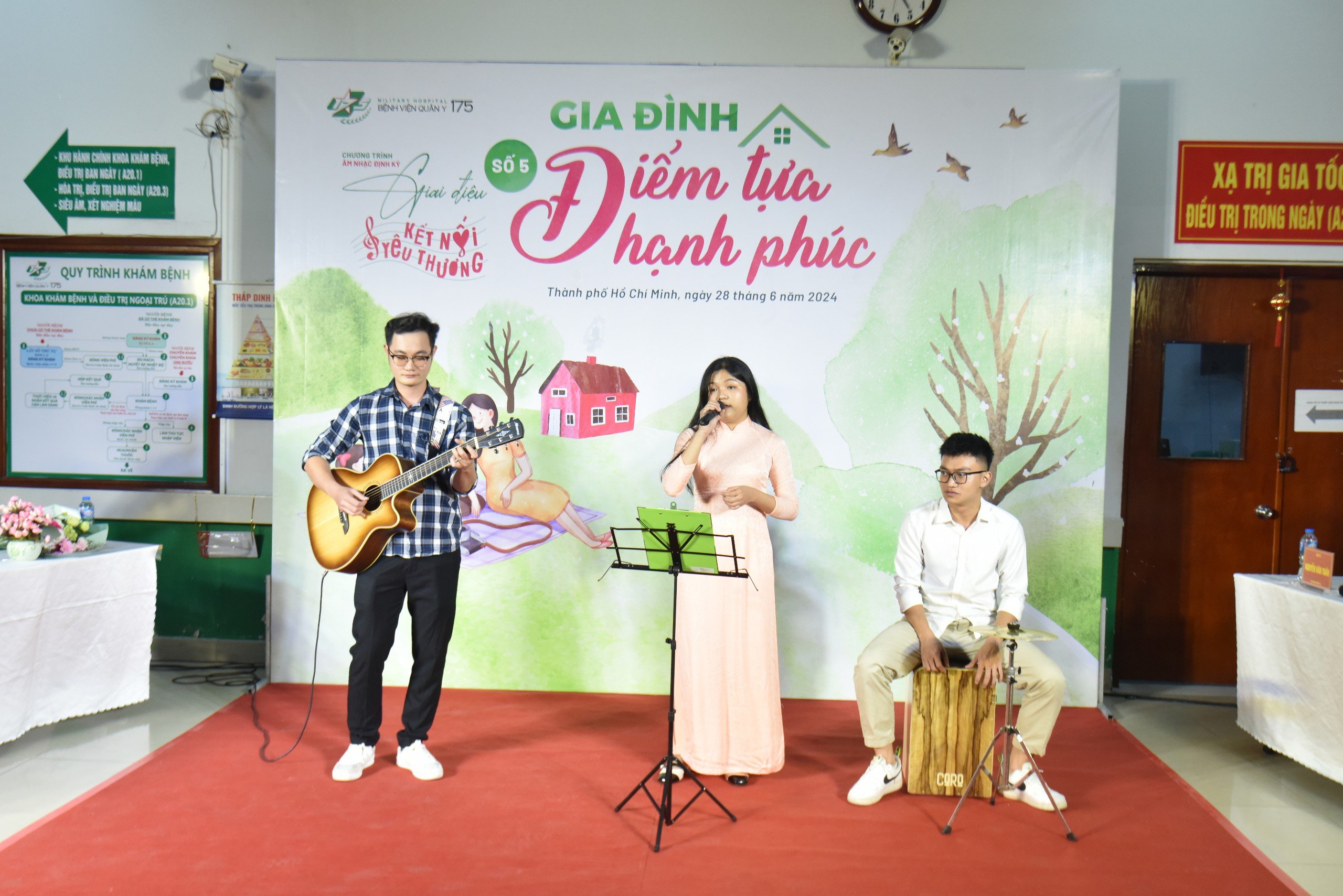 Chiều tối 28-6, tại Viện Ung bướu và Y học hạt nhân, Bệnh viện Quân y 175 tổ chức chương trình âm nhạc “Giai điệu kết nối yêu thương” số thứ 5 chủ đề “Gia đình – Điểm tựa hạnh phúc” dành cho hơn 200 bệnh nhân ung thư đang điều trị dài ngày tại bệnh viện.