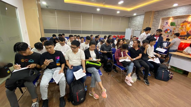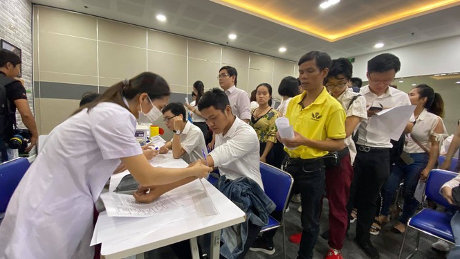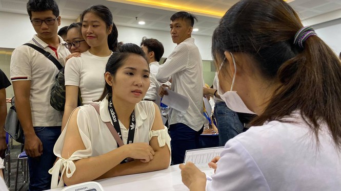 Trước giờ khai mạc ngày hội hiến máu tình nguyện Chủ nhật Đỏ do báo Tiền Phong tổ chức tại TPHCM, hàng trăm bạn trẻ đã háo hức đến làm làm thủ tục hiến máu cứu người.