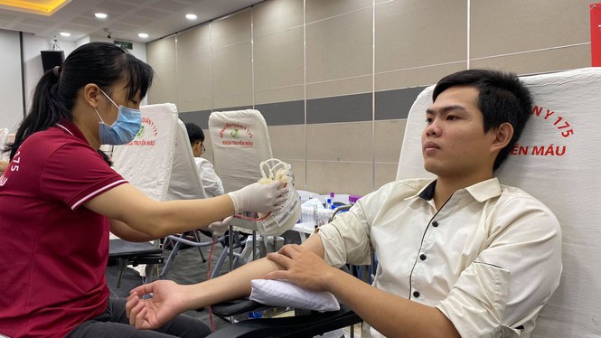 Đội ngũ nhân viên y tế cũng hối hả cho việc tiếp nhận máu từ các tình nguyện viên hiến máu.
