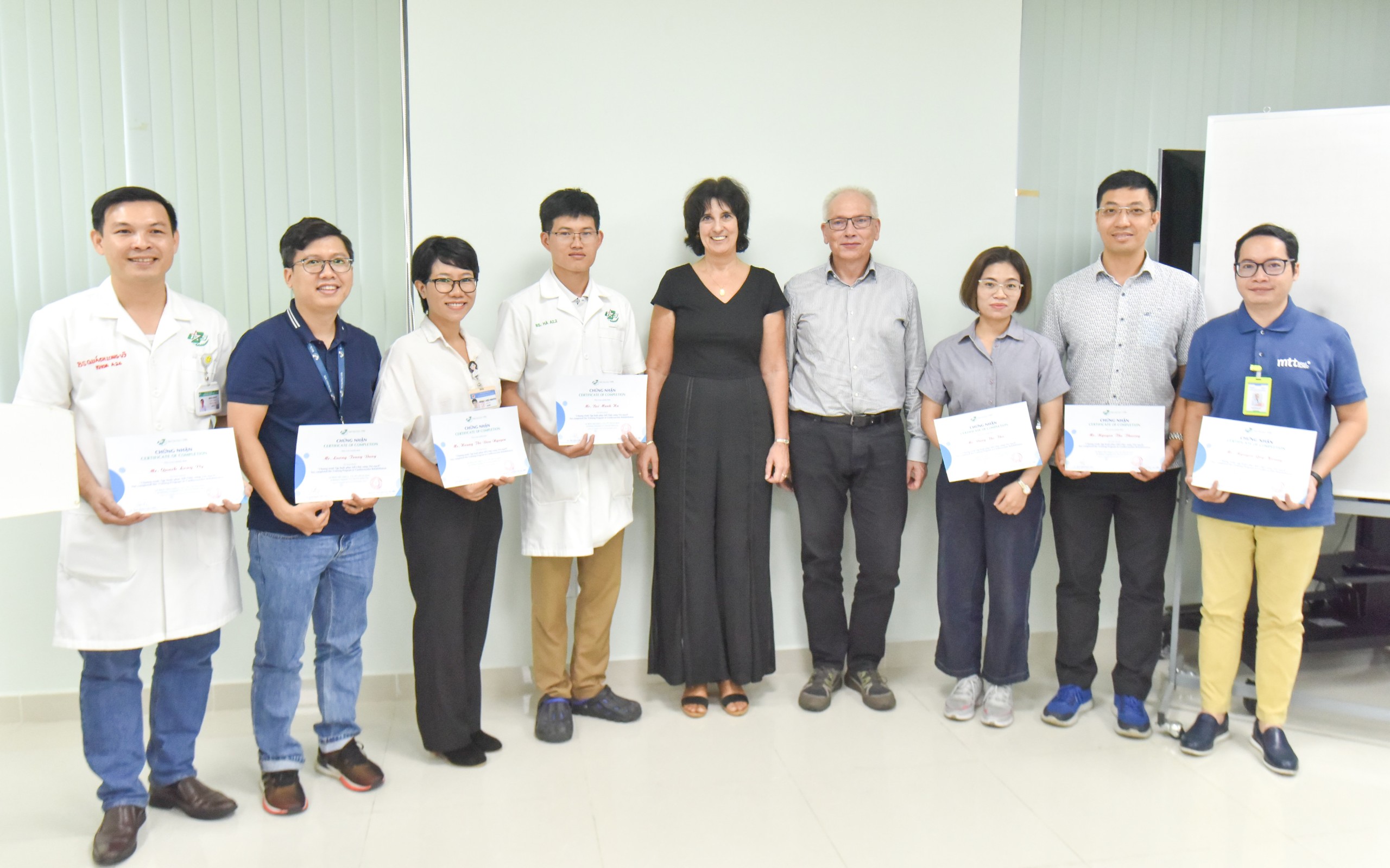 Các học viên hoàn thành xuất sắc khoá học và được các TS.BS Manju Guha trao chứng chỉ CME