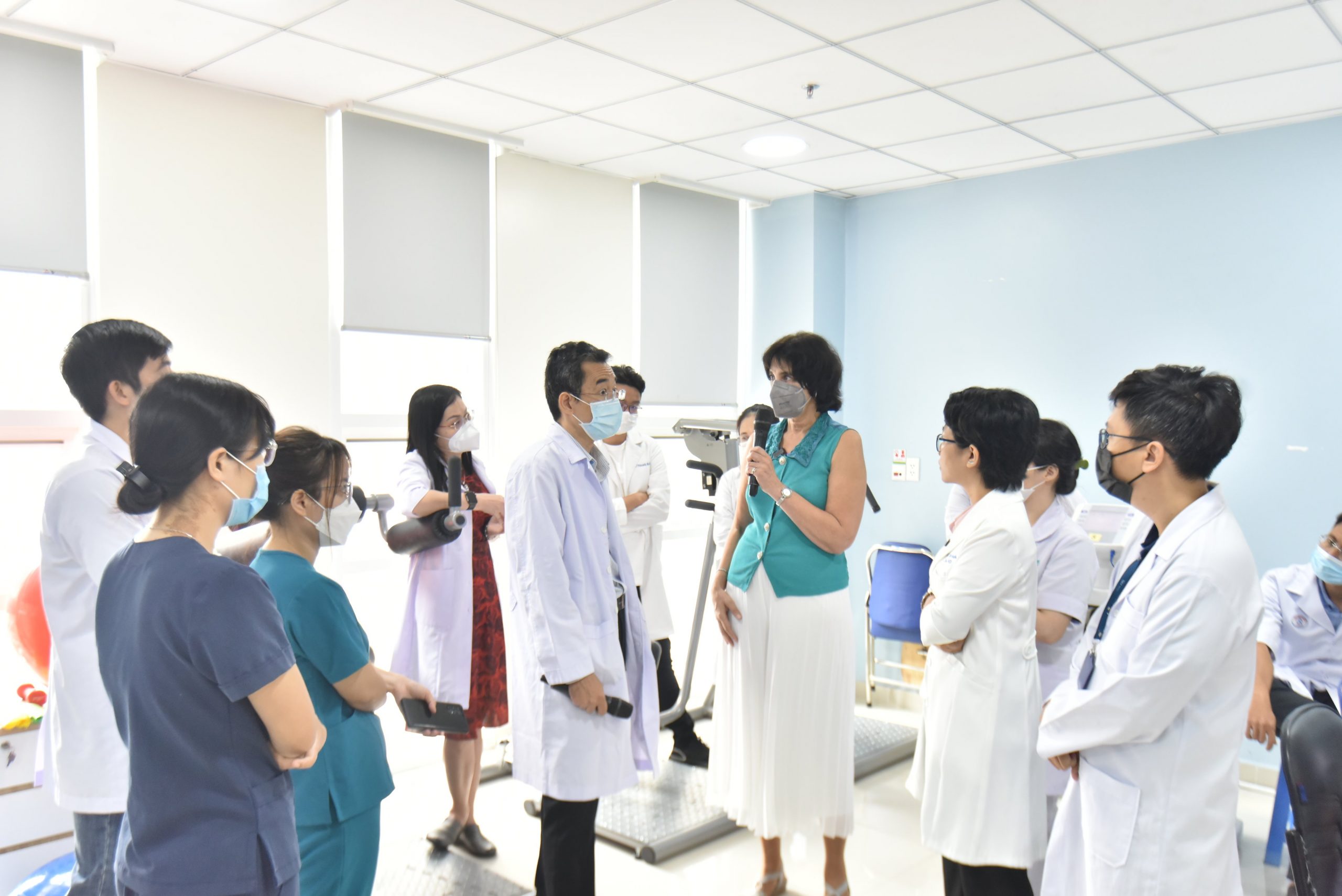 Bên cạnh các bài học lý thuyết, TS.BS Manju Guha còn giảng dạy, hướng dẫn thực hành qua Chương trình thăm khám và tư vấn điều trị các bệnh lý: PHCN sau nhồi máu cơ tim, có hoặc không nong và đặt stent; PHCN sau phẫu thuật bắc cầu động mạch vành; PHCN sau phẫu thuật thay van tim….