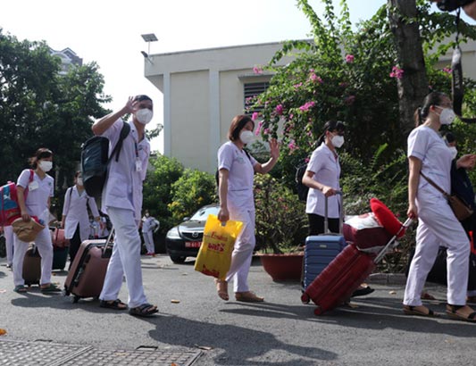 Đại tá Trần Quốc Việt – phó giám đốc Bệnh viện Quân y 175 – cho biết 60 nhân viên y tế lên đường thay thế các đơn vị quân y phía Bắc đóng tại các trạm y tế lưu động vừa rút quân, đảm bảo xuyên suốt vai trò chăm sóc, tư vấn, cấp phát các túi thuốc cho F0 tại cộng đồng.