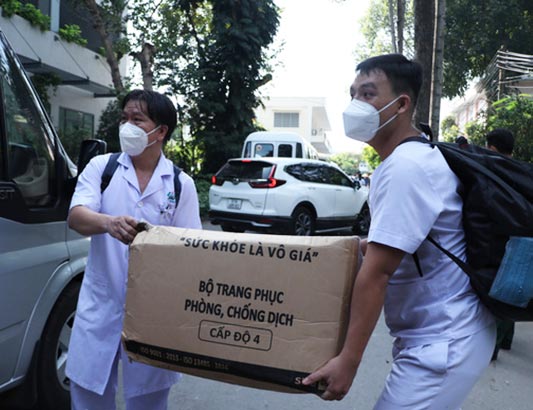 Các nhân viên y tế lên đường mang theo các trang thiết bị cần thiết để chống dịch