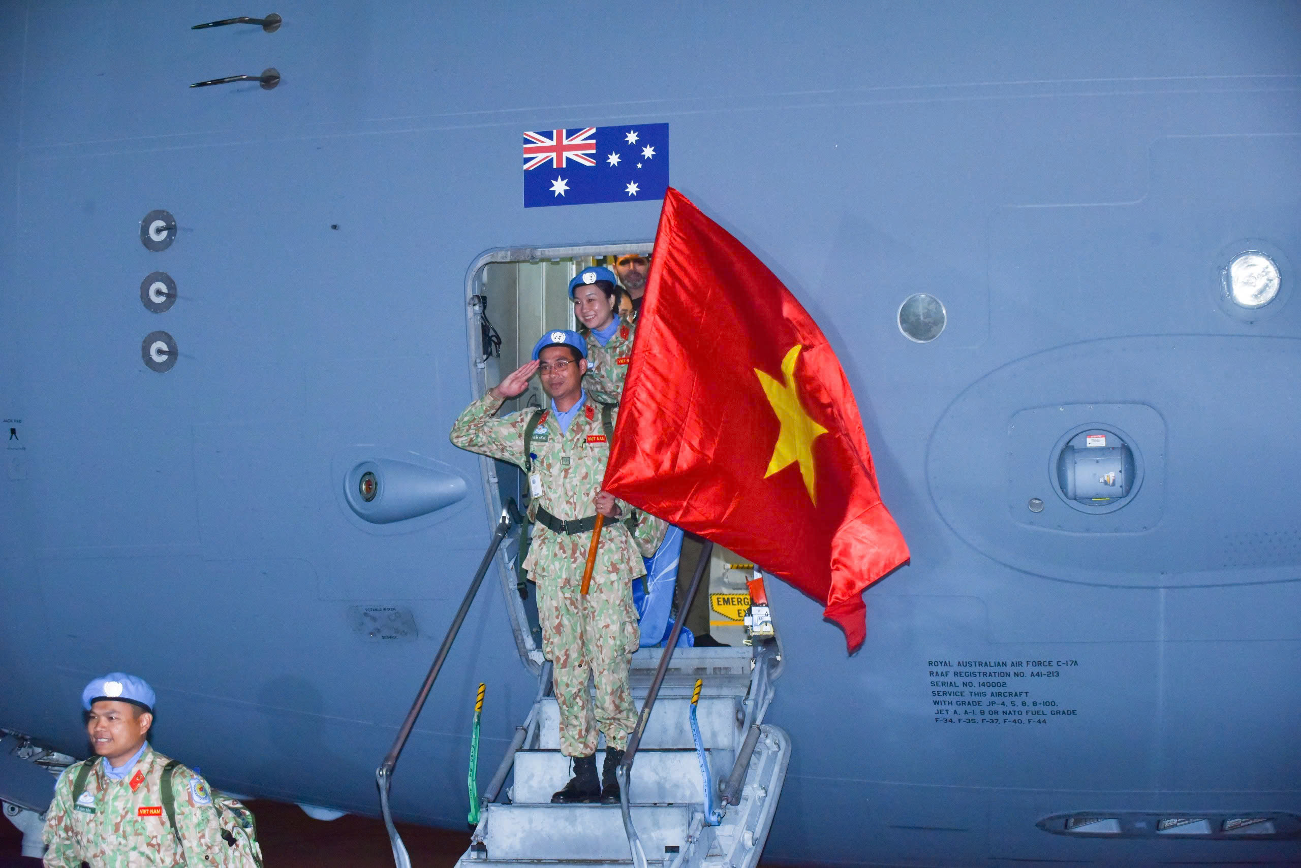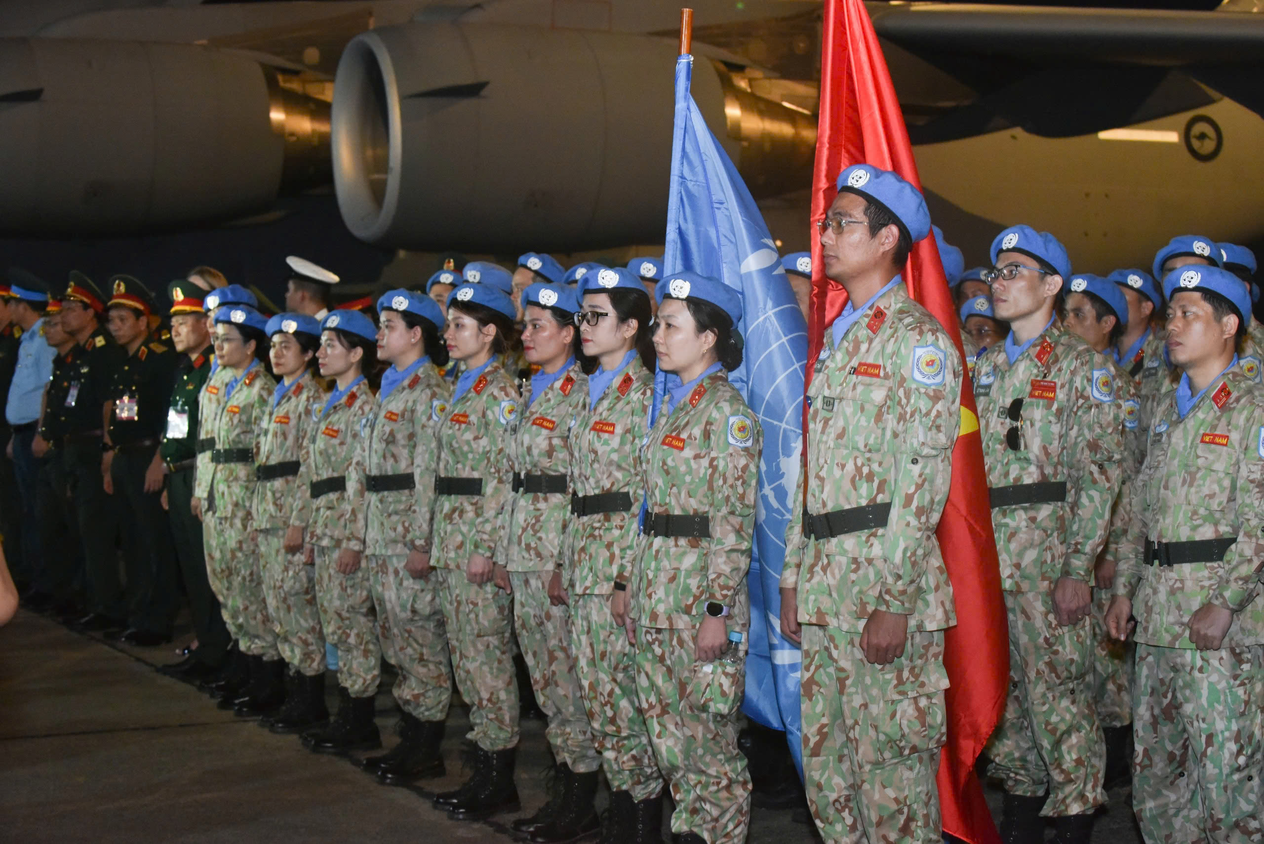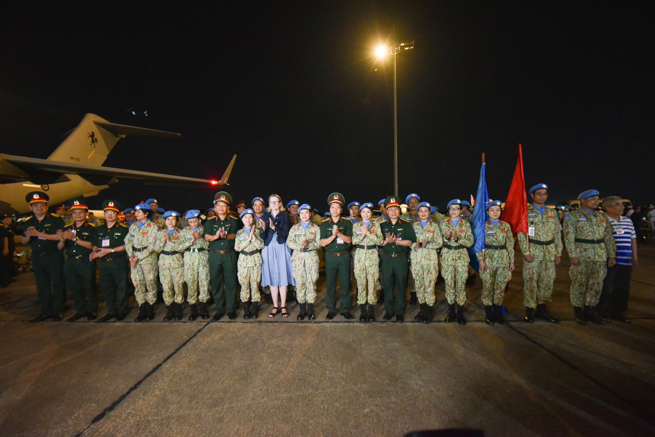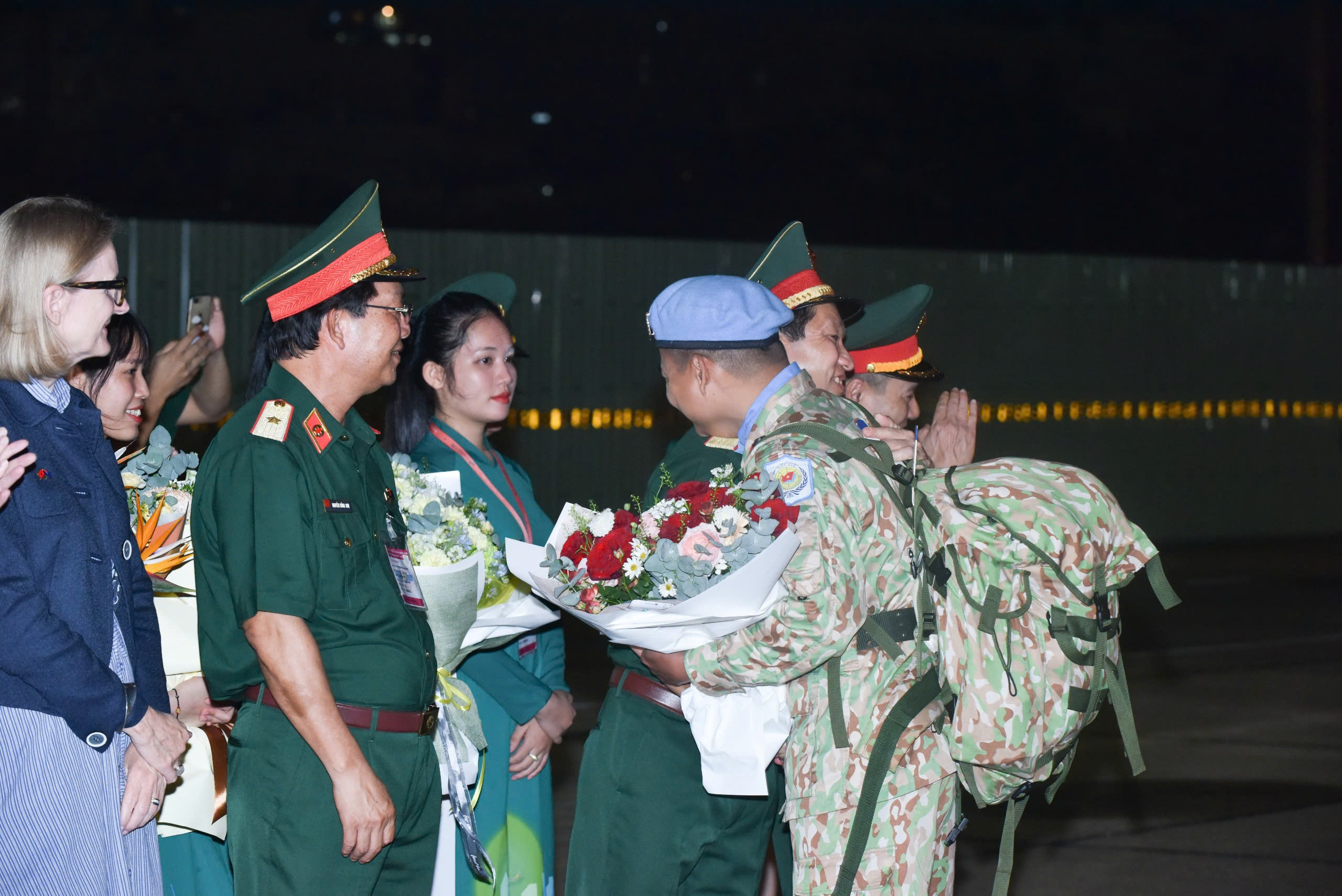 Khuya 28/9, 51 chiến sĩ mũ nồi xanh thuộc Bệnh viện dã chiến cấp 2 số 5 trở về nước sau khi hoàn thành nhiệm vụ tại phái bộ Liên Hiệp Quốc tỉnh Bentiu, Nam Sudan.