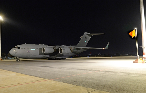 Máy bay vận tải quân sự của Không quân Hoàng gia Australia hạ cánh xuống sân bay Tân Sơn Nhất.