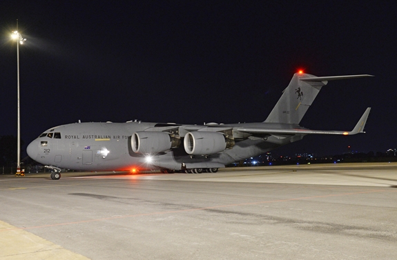 Đúng 18 giờ 45 phút, máy bay vận tải quân sự Boeing C-17 của Không quân Hoàng gia Australia