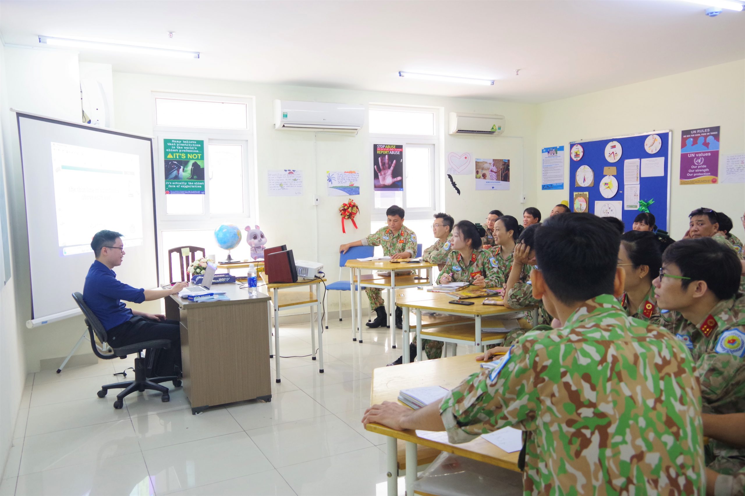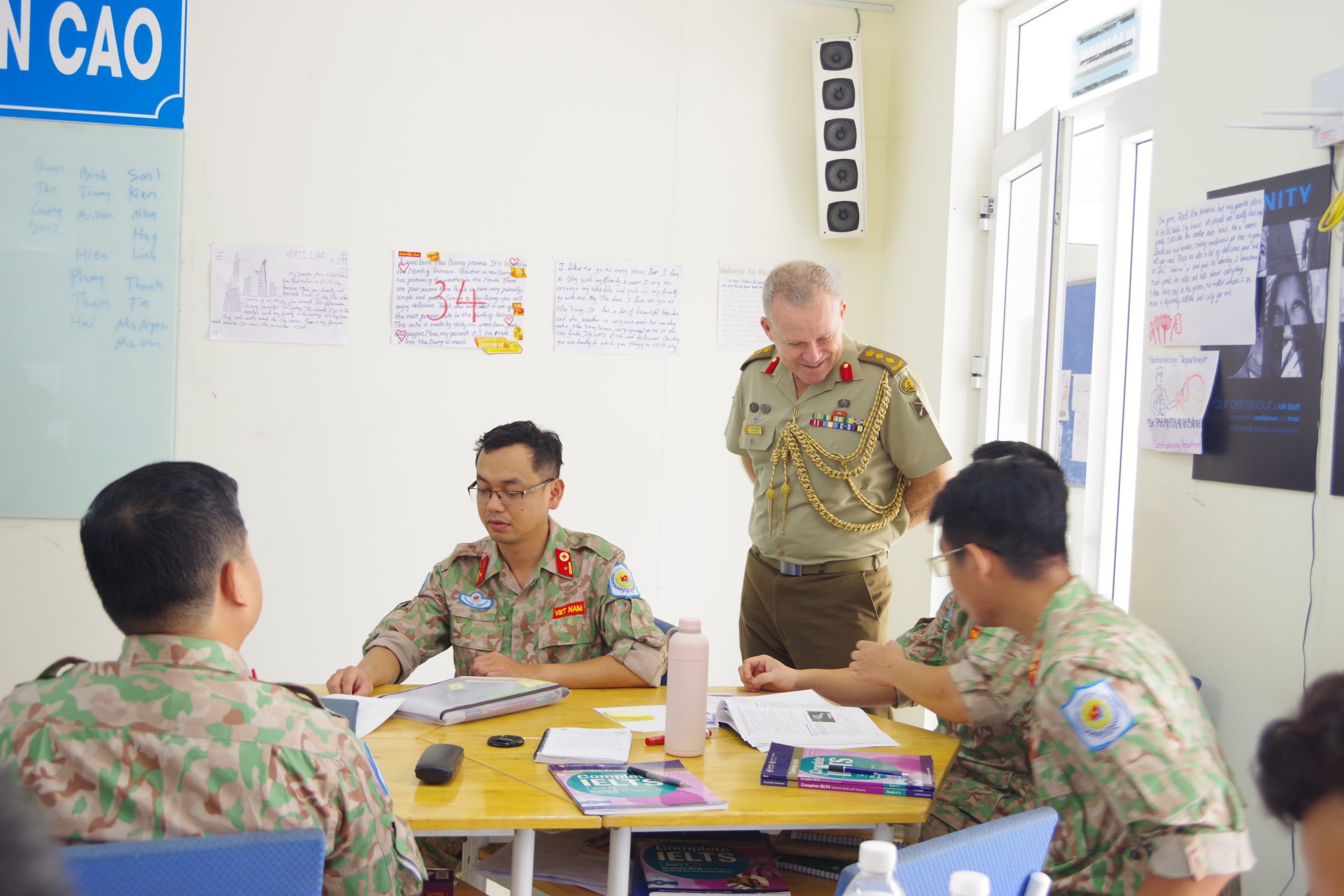 Trước đó, Đoàn tùy viên Australia đã đến thăm và khảo sát tình hình học tập các thành viên Bệnh viện Dã chiến cấp 2 số 5 nhằm đảm bảo chất lượng đào tạo tiếng Anh cho cán bộ, nhân viên trước khi tham gia thực hiện nhiệm vụ tại Phái bộ GGHB Liên Hợp quốc ở Nam Sudan. Đại tá Paul Foura, Tùy viên Quốc phòng (DA) – Australia tại Việt Nam và Thiếu tá Amanda Jenner, Sỹ quán Giáo dục Hợp tác Quốc phòng (DCEO) tiến hành trao đổi cùng các Giảng viên nhằm đảm bảo chương trình học Tiếng anh đáp ứng tiêu chuẩn cho các cán bộ nhân viên BVDC2.5, sát với tình hình thực tế tại Nam Sudan.