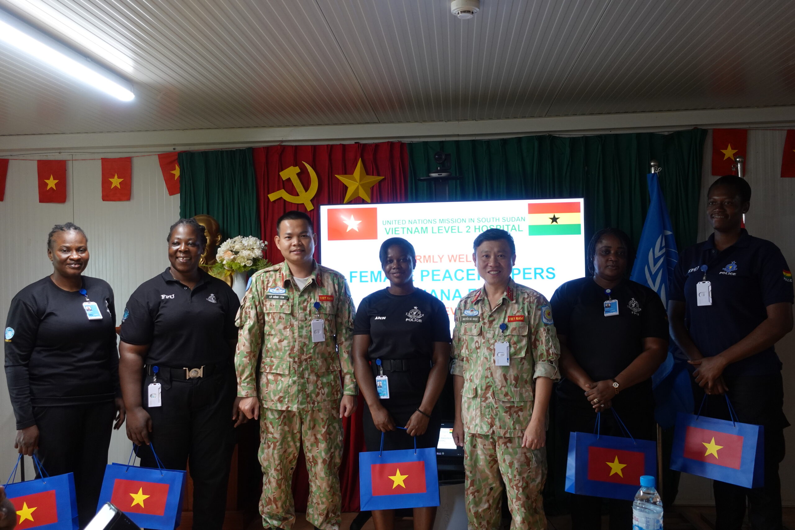 Để hưởng ứng ngày 19/8 – Ngày thành lập lực lượng Công an nhân dân, Bệnh viện dã chiến cấp 2 số 5 đã thăm khám sức khỏe cho 30 đồng chí nữ thuộc đơn vị cảnh sát Ghana (Ghana FPU) tại phái bộ UNMISS, phân khu Bentiu, Nam Xu-đăng.