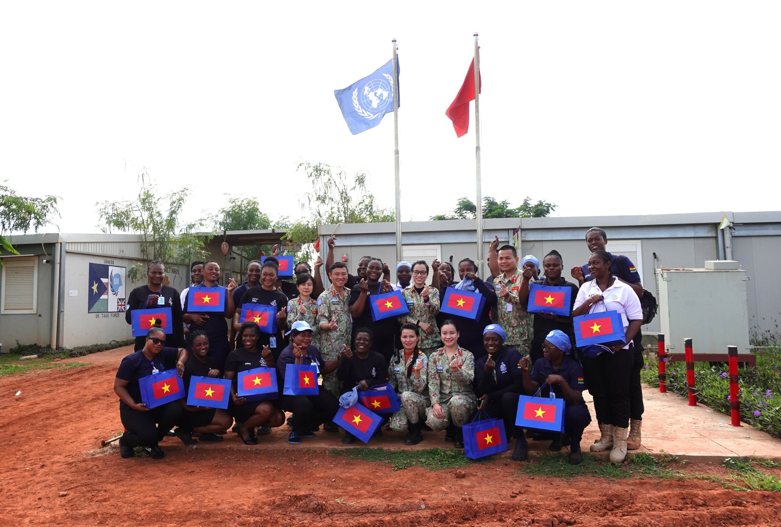 Bệnh viện dã chiến cấp 2 số 5 chụp lưu niệm với các nữ cảnh sát Ghana sau khi được thăm khám xong