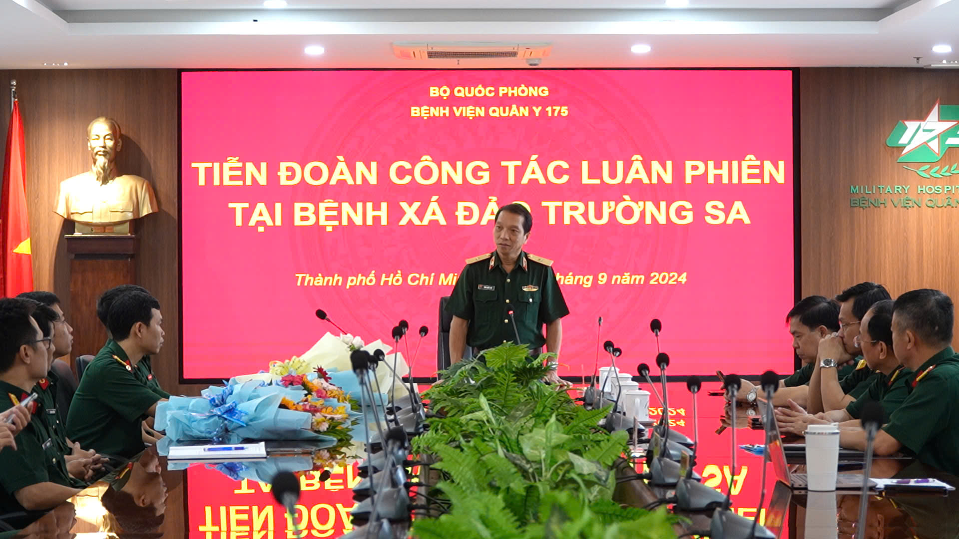 Phát biểu động viên các y, bác sĩ trẻ lên đường thực hiện nhiệm vụ tại bệnh xá đảo Trường Sa, Thiếu tướng, Tiến sĩ, TTND Trần Quốc Việt, Giám đốc Bệnh viện Quân y 175 căn dặn các y, bác sĩ phải xác định đây là vinh dự và tự hào của đội ngũ y, bác sỹ trẻ Bệnh viện. Phát huy thành quả của các thế hệ đi trước, tiếp tục xây dựng mối đoàn kết, luôn hỗ trợ lẫn nhau trong cuộc sống và chuyên môn. Đồng thời công tác thực hiện tại Bệnh xá là nhiệm vụ sẵn sàng chiến đấu, các bác sỹ phải phối hợp chặt chẽ với các đơn vị tại huyện đảo, làm tốt công tác dân vận, tích cực lao động chuyên môn, rèn luyện sức khỏe, chăm lo xây dựng đơn vị vững mạnh.