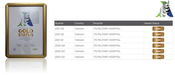 Theo Đại tá, TS.BSCKII. Trương Đình Cẩm, Phó Giám đốc Bệnh viện Quân y 175, để có được chứng nhận đạt chuẩn chất lượng điều trị Vàng của Tổ chức Đột quỵ Thế giới, Bệnh viện Quân y 175 phải đáp ứng hàng loạt các tiêu chí khắt khe như: thời gian từ khi người bệnh nhập viện đến khi được điều trị tái thông mạch máu là dưới 60 phút, tỷ lệ điều trị tái thông 5-15% trong tổng số bệnh nhân nhập viện; tỷ lệ bệnh nhân được chụp MRI/CT Scanner trên 85%… Ngoài ra, bệnh viện cũng phải đạt các tiêu chí về tỷ lệ bệnh nhân đột quỵ nhồi máu não được sử dụng thuốc chống kết tập tiểu cầu khi xuất viện; tỷ lệ bệnh nhân rung nhĩ được điều trị kháng đông khi xuất viện; tỷ lệ bệnh nhân được tầm soát rối loạn chức năng nuốt tại đơn vị đột quỵ; tỷ lệ bệnh nhân đột quỵ được điều trị tại đơn vị đột quỵ hoặc phòng hồi sức tích cực. Đặc biệt, Bệnh viện Quân y 175 là một trong số ít các bệnh viện trên cả nước duy trì được chất lượng Vàng trong 6 quý liên tiếp.