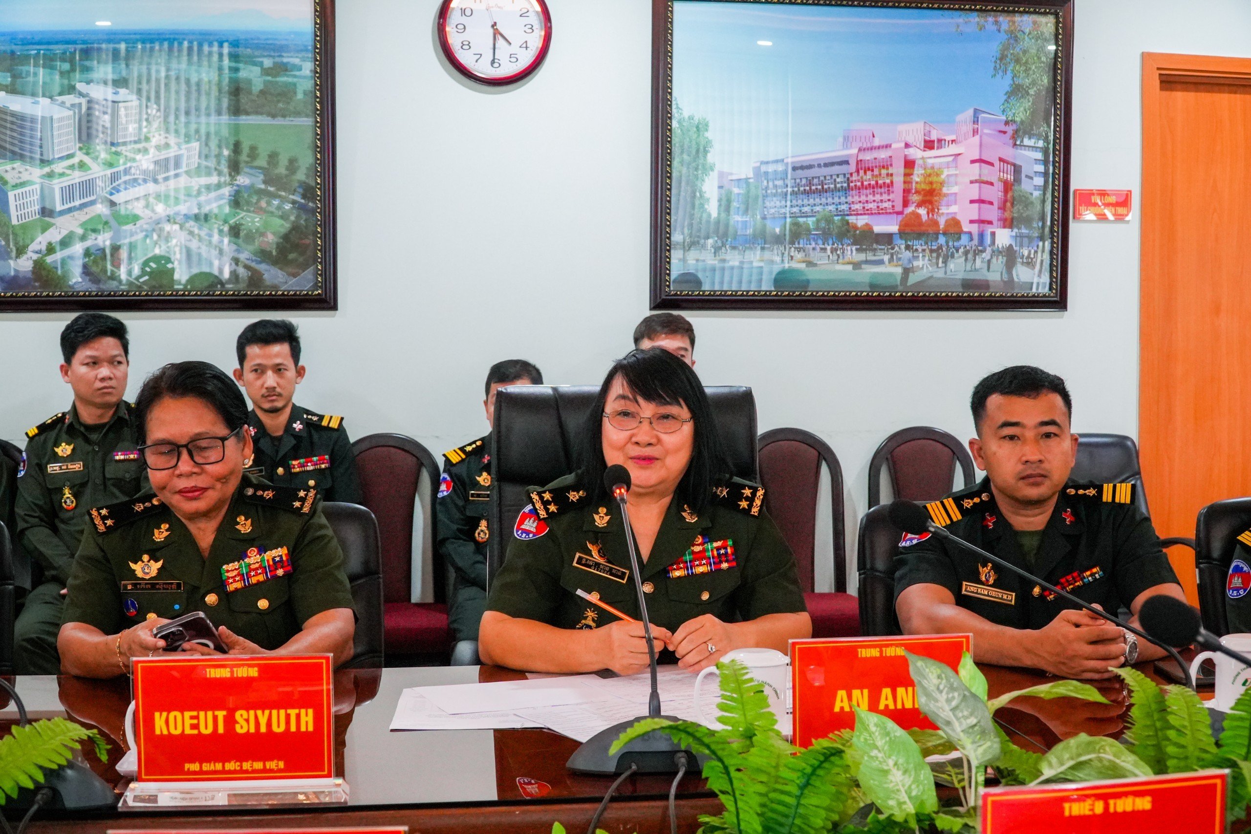 Trung tướng An Ann – Phó Giám đốc Bệnh viện Preah ket Meala phát biểu tại buổi làm việc