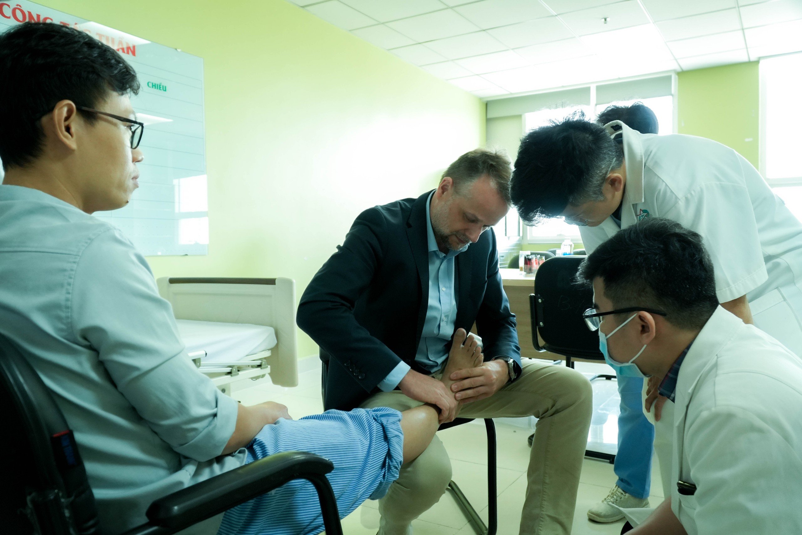 Thông qua BVQY175, anh Khánh biết được thông tin về chuyến làm việc tại Việt Nam của đoàn bác sĩ CHLB Đức trong đó có GS.TS Pierre Hepp – một trong những chuyên gia hàng đầu của Bệnh viện Đại học Tổng hợp Leipzig với gần 30 năm kinh nghiệm trong điều trị và phẫu thuật chấn thương thể thao. Trực tiếp khám cho bệnh nhân Khánh, GS.TS Pierre Hepp cho biết: “Đây là trường hợp tổn thương nhiều lần, khó khăn trong việc khôi phục chức năng cho anh Khánh, bệnh nhân phải trải qua phẫu thuật phức tạp”.