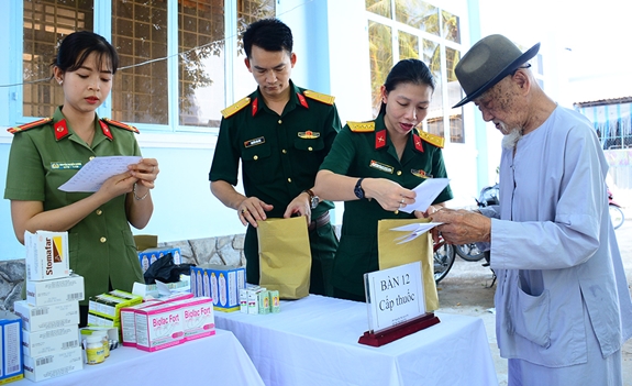 Tại chương trình, các y, bác sĩ đã khám bệnh, cấp phát thuốc miễn phí gần 350 gia đình chính sách, hộ nghèo, cận nghèo, người già có hoàn cảnh khó khăn trên địa bàn. Đến với chương trình lần này, Bệnh viện Quân y 175 đã cử đội ngũ y, bác sĩ kết hợp với một số trang thiết bị y tế hiện đại để khám, chẩn đoán nhiều loại bệnh cho người dân từ khám tổng quát đến siêu âm, đo điện tim, đo đường huyết nhanh… Qua đó, giúp tầm soát tốt sức khỏe của người dân. Ban tổ chức còn trao tặng các phần quà ý nghĩa cho các đối tượng được khám bệnh. Các y bác sĩ còn tư vấn, hướng dẫn người dân cách phòng tránh một số loại bệnh thông thường, các phương pháp giữ gìn, chăm sóc sức khỏe cho bản thân và gia đình. Bên cạnh đó, đoàn công tác đã trực tiếp đến thăm hỏi, khám bệnh, tặng quà 7 Bà mẹ Việt Nam Anh hùng và một số gia đình chính sách trên địa bàn xã Bình Phú.