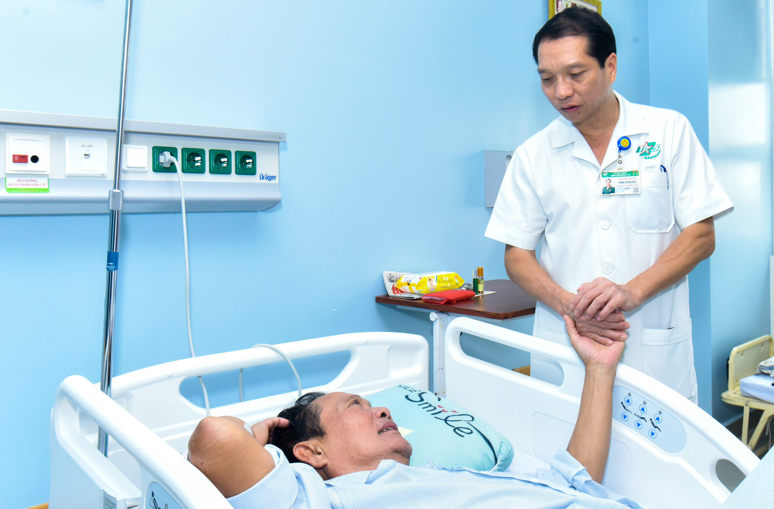 đến từng giường bệnh thăm hỏi, động viên, chúc Tết từng người bệnh.