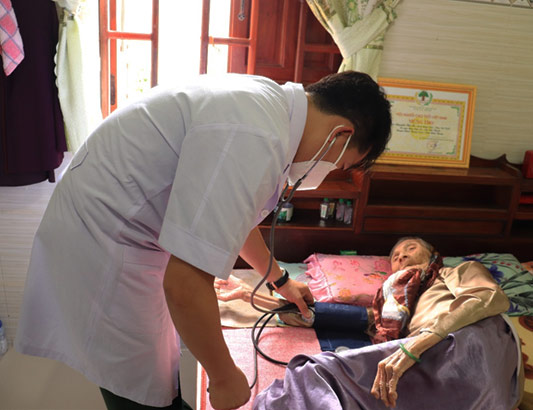 Trung tá, BSCKII Vũ Sơn Giang, Phó Chủ nhiệm Chính trị thăm khám các gia đình chính sách