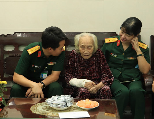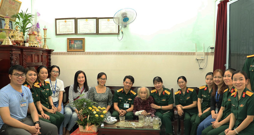 Các cán bộ, nhân viên, Đoàn thanh niên Bệnh viện Quân y 175 đến thăm hỏi và động viên Mẹ Việt Nam Anh hùng – Lê Thị Thu (91 tuổi) tại Quận Gò Vấp, Tp.HCM.