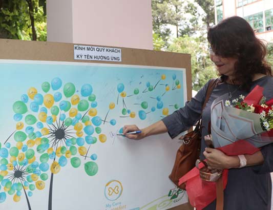 TS BS Thân Hà Ngọc Thể, Phó Chủ tịch Hội chăm sóc giảm nhẹ đã đến tham dự và ký tên hưởng ứng