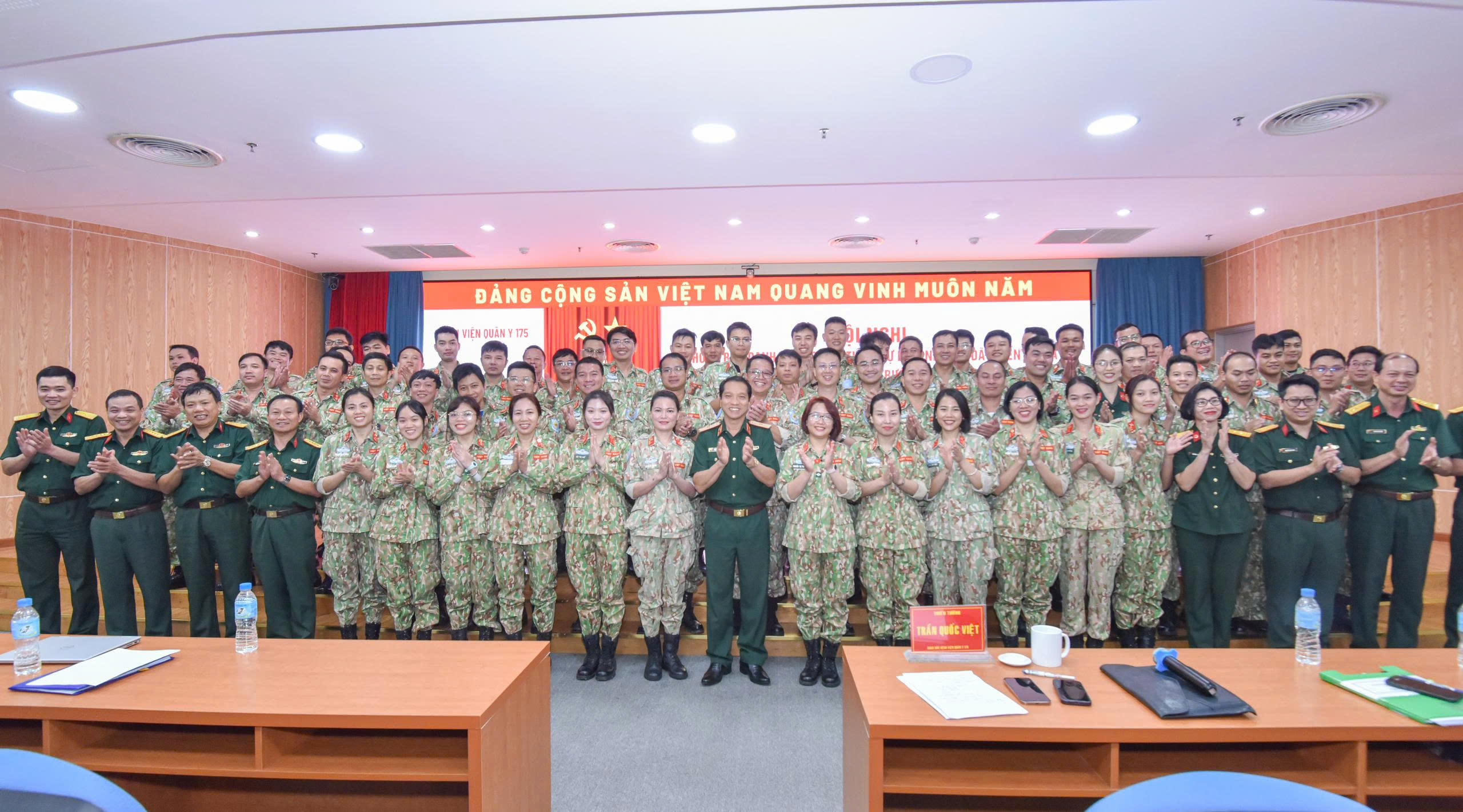 Lãnh đạo Bệnh viện Quân y 175, đại biểu các cơ quan cùng cán bộ, nhân viên chính thức của Bệnh viện Dã chiến cấp 2 số 7 chụp ảnh lưu niệm