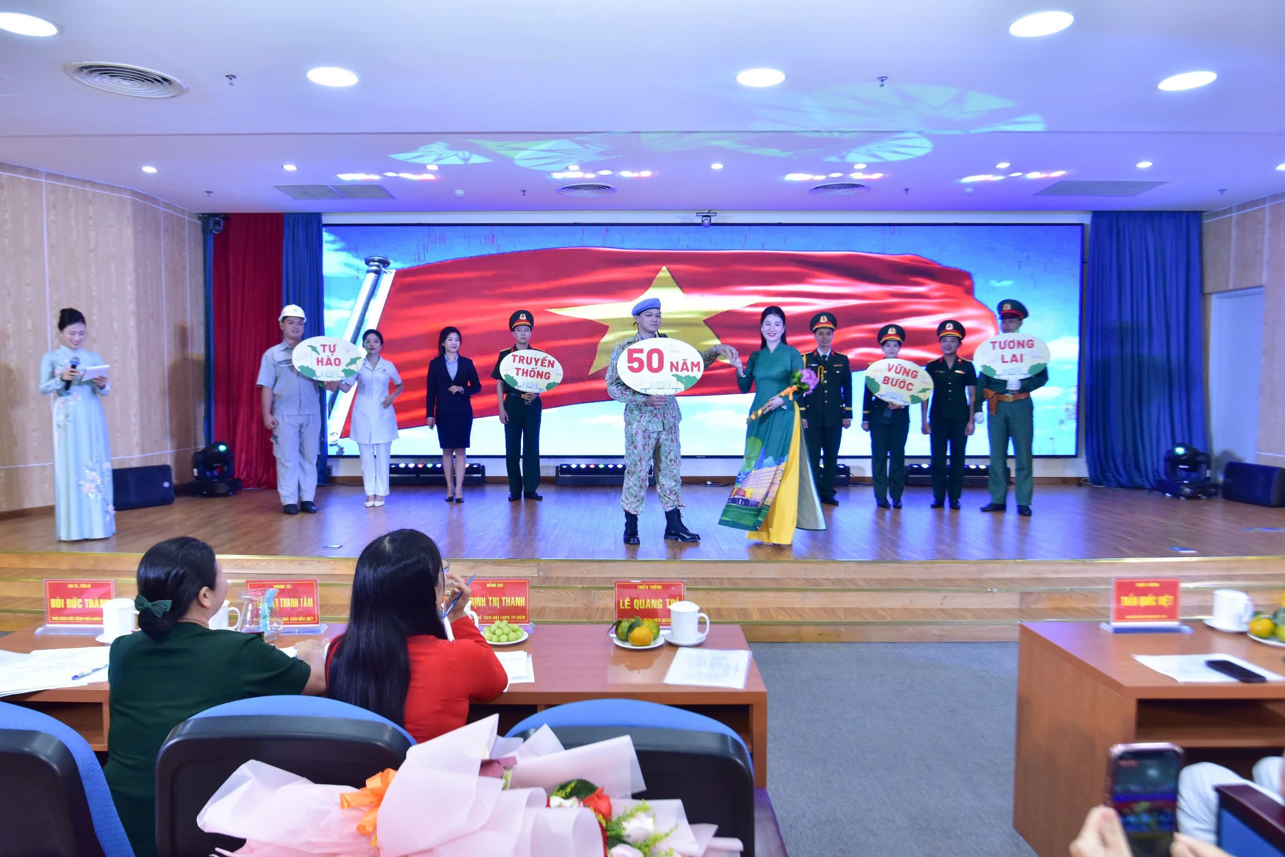 Dự và chỉ đạo Hội thi có Thiếu tướng, TS. TTND Trần Quốc Việt – Phó Bí thư Đảng ủy, Giám đốc Bệnh viện Quân y 175. Về phía Bệnh viện Quân y 175, có sự tham dự của Đại tá, TS. TTƯT Bùi Đức Thành – Phó Giám đốc Bệnh viện, Thượng tá, TS. Phan Đình Mừng – Phó Giám đốc Bệnh viện, cùng các đồng chí đại diện cấp ủy, chỉ huy các cơ quan, đơn vị trực thuộc bệnh viện. Về phía khách mời có đồng chí Trịnh Thị Thanh – Phó Chủ tịch Hội Liên hiệp Phụ nữ Tp. Hồ Chí Minh và Trung tá Trần Thị Thanh Tâm – Phó Chủ nhiệm Nhà Văn hóa Quân khu 7.
