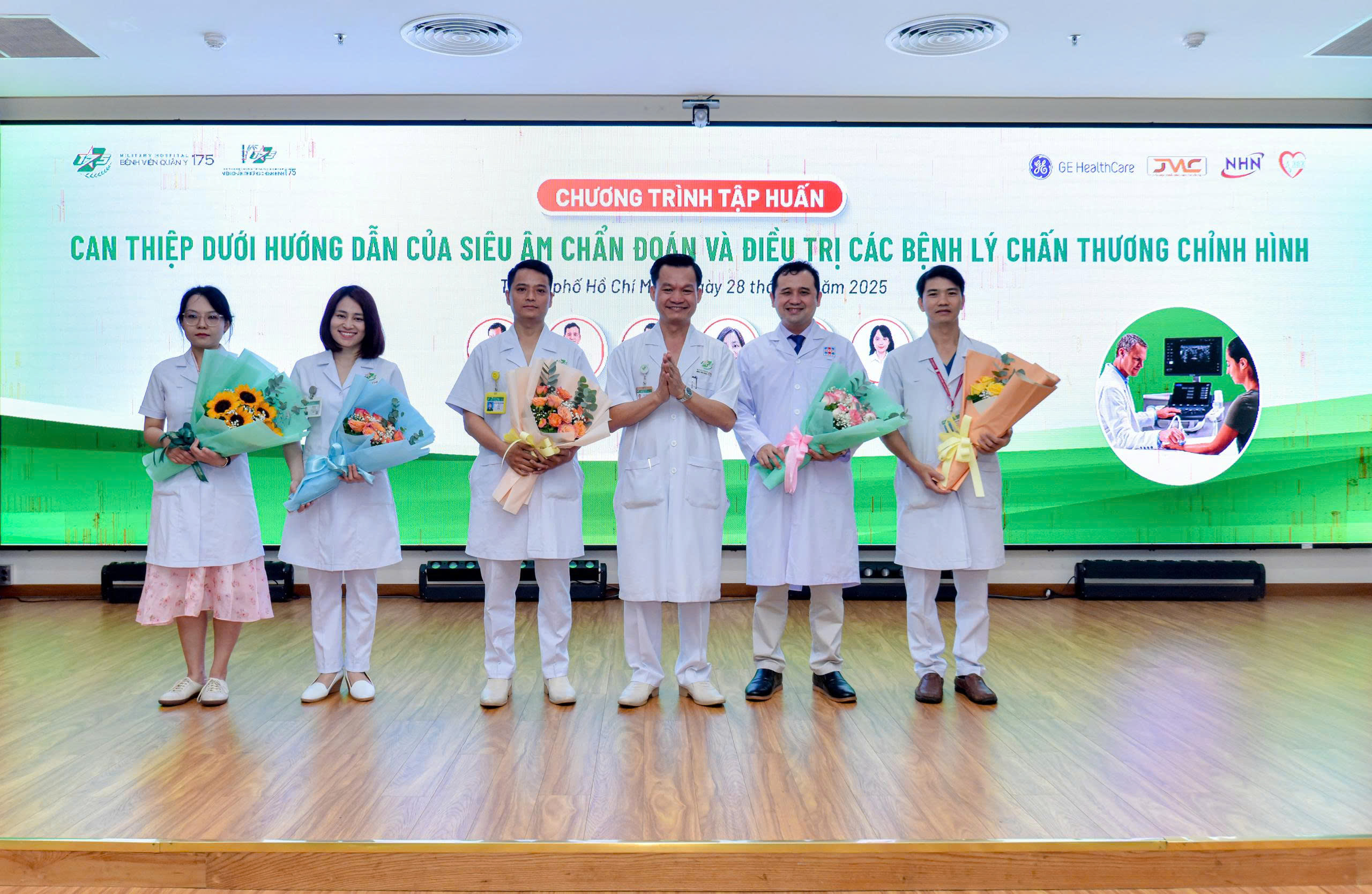 Phát biểu khai mạc, Đại tá, TS. BS. Phan Đình Mừng – Phó Giám đốc Bệnh viện Quân y 175, Giám đốc Viện Chấn thương Chỉnh hình nhấn mạnh vai trò ngày càng quan trọng của siêu âm trong chấn thương chỉnh hình. Nếu trước đây siêu âm chủ yếu phục vụ chẩn đoán thì hiện nay đã trở thành công cụ hỗ trợ can thiệp, phục hồi chức năng và ứng dụng rộng rãi trong lĩnh vực cơ xương khớp, chấn thương chỉnh hình cũng như y học thể thao và y học tái tạo, góp phần nâng cao hiệu quả điều trị và bảo đảm an toàn người bệnh. Bác sĩ Mừng cũng khẳng định xu thế y học hiện đại chú trọng bảo tồn cấu trúc khớp, gân, cơ. Do đó, việc tổ chức các khóa tập huấn ứng dụng siêu âm mang ý nghĩa thiết thực, vừa giúp nâng cao chất lượng điều trị, vừa phát triển nguồn nhân lực chất lượng cao cho Viện Chấn thương chỉnh hình và Bệnh viện Quân y 175. Đây cũng là nhiệm vụ chủ đạo của Đảng ủy, Ban Giám đốc Bệnh viện Quân y 175 đang hướng tới trong giai đoạn phát triển mới của Bệnh Viện Quân Y 175.