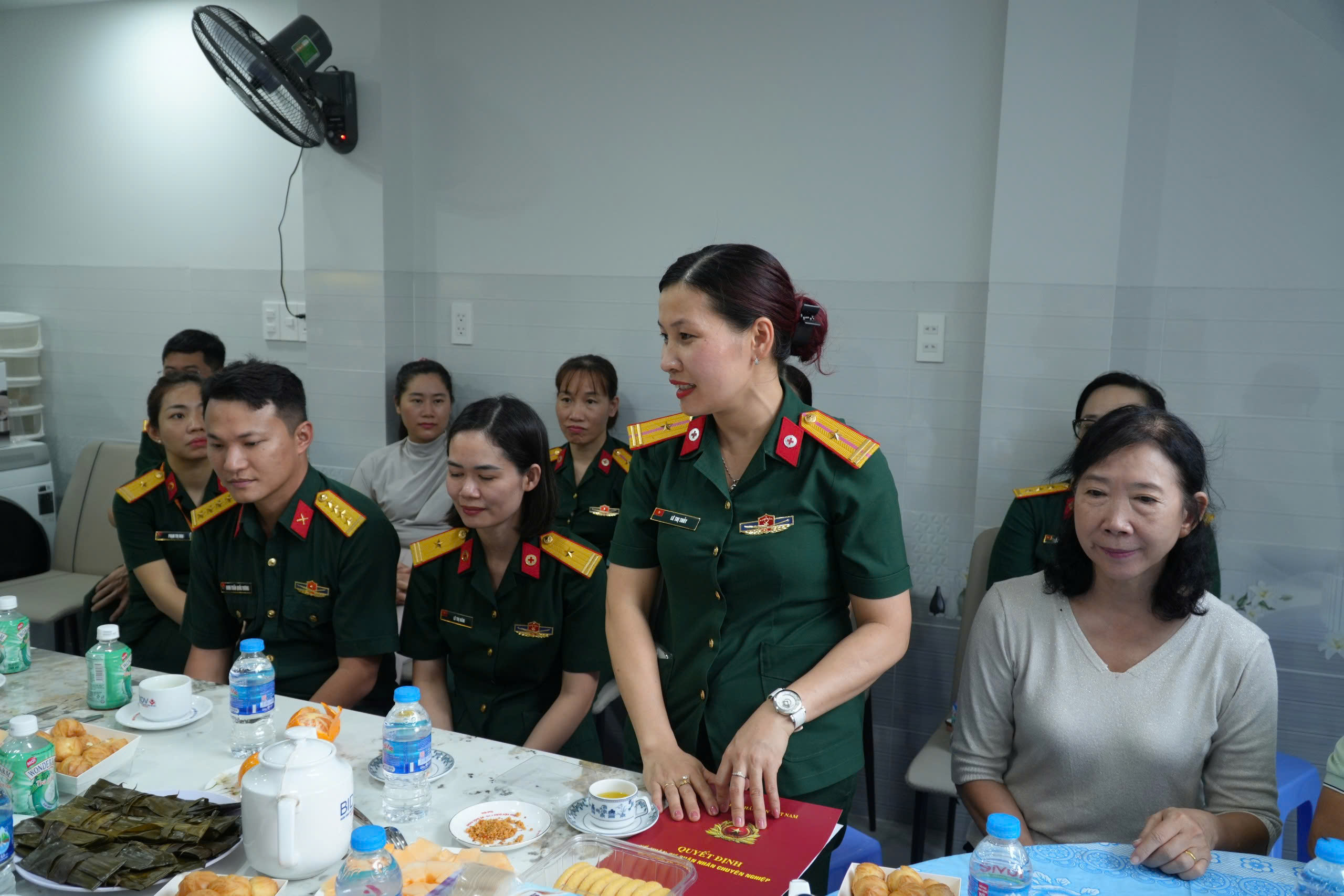 Đồng chí Thiếu tá QNCN Lê Thị Thuỷ gửi lời cảm ơn đến Ban giám đốc và tổ chức công đoàn Bệnh viện