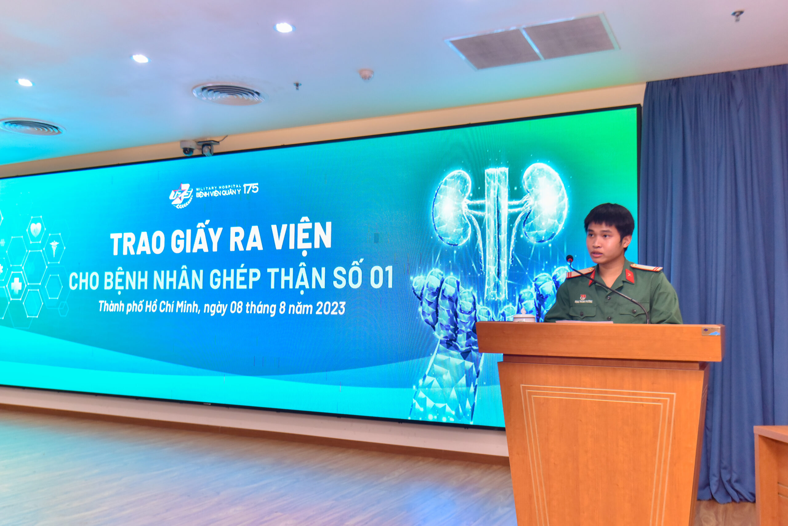 Chiều 8-8, Bệnh viện Quân y 175 tổ chức trao giấy ra viện cho bệnh nhân ghép thận đầu tiên. Đây là ca phẫu thuật lấy, ghép thận cùng huyết thống với quy trình hoàn chỉnh đầu tiên tại Bệnh viện Quân y 175, đánh dấu kết quả tốt đẹp trong công tác hợp tác, chuyển giao kỹ thuật ghép thận giữa Bệnh viện Quân y 175 và Bệnh viện Trung ương Quân đội 108.