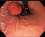 Bệnh nhân T.T.M.H (1966, Bình Thuận) đi khám tại Bệnh viện Quân y 175 vì có triệu chứng đau bụng vùng thượng vị nhiều tháng nay, ăn cảm giác chậm tiêu. Qua nội soi dạ dày, bệnh nhân phát hiện có một tổn thương u dưới niêm mạc kích thước 4x6cm vùng thân vị, bề mặt tổn thương có ổ loét nông.