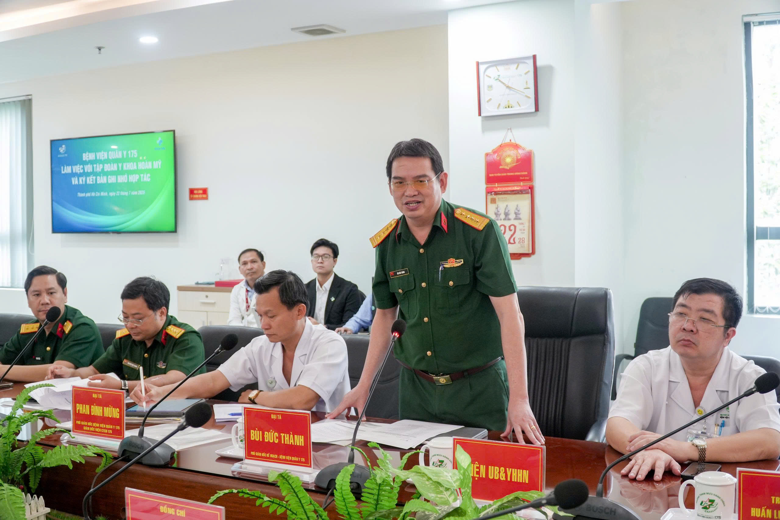 Phát biểu khai mạc buổi lễ, Đại tá, TS. Bùi Đức Thành – Phó Giám đốc Bệnh viện Quân y 175 nhấn mạnh: Mục tiêu chung của hợp tác là hướng tới việc nâng cao chất lượng khám chữa bệnh, với nguyên tắc “Lấy người bệnh làm trung tâm”, phù hợp với giá trị cốt lõi của bệnh viện và định hướng phát triển của cả hai bên.