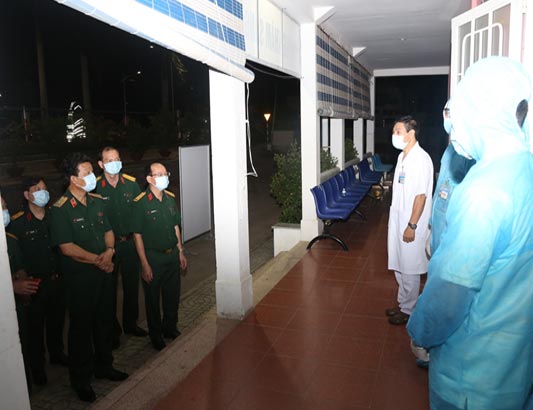 Triển khai Bệnh viện dã chiến truyền nhiễm, khu cách ly sẵn sàng tiếp nhận điều trị các trường hợp nghi nhiễm. Khoa Trang bị, Dược bảo đảm đầy đủ, có lượng dự trữ phù hợp về thuốc, hoá chất, trang thiết bị dụng cụ, vật tư y tế, phương tiện phòng hộ cá nhân sẵn sàng đảm bảo cho các tình huống dịch bệnh theo kịch bản kế hoạch của Bệnh viện. Khoa Kiểm soát nhiễm khuẩn tăng cường giám sát vệ sinh, bố trí dung dịch rửa tay vào các điểm như: thang máy, các buồng khám, cửa ra vào các tòa nhà …, phun thuốc khử khuẩn đảm bảo sạch sẽ môi trường xung quanh Bệnh viện. Phòng Hậu cần kỹ thuật bảo đảm phục vụ nhu cầu ăn uống cho 100% cán bộ, chiến sĩ, công nhân viên và bệnh nhân. Các khoa bố trí, tổ chức làm việc theo ca kíp, có phương án dự phòng lực lượng để thay thế khi có cán bộ, chiến sĩ, nhân viên phải cách ly.