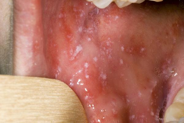 + Dấu Koplik: hạt trắng nhỏ như đầu đinh ghim, nổi gồ lên trên bề mặt niêm mạc má, xung quanh hạt Koplik niêm mạc thường có sung huyết, xuất hiện thường vào ngày thứ 2 của sốt, biến mất sau 24-72h. Có thể sưng đau hạch.