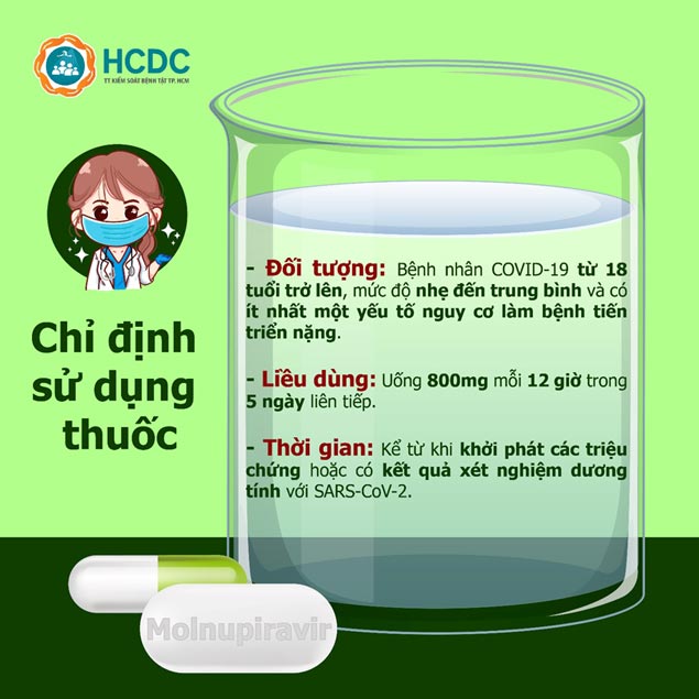* Lưu ý: Sử dụng Molnupiravir cần phải có sự thăm khám, kê đơn và hướng dẫn của bác sĩ, nhân viên y tế.
