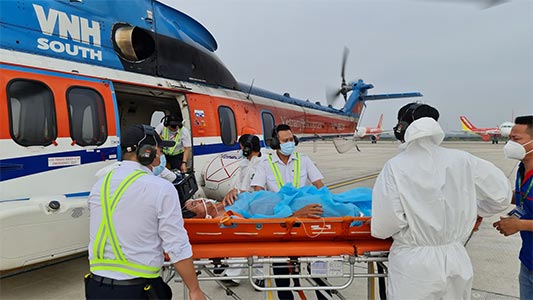 Thực hiện chuyến bay trong điều kiện đêm tối, thời tiết không thuận lợi và chịu ảnh hưởng bởi dịch Covid-19, tuy nhiên nhờ sự chuẩn bị chu đáo, công tác tổ chức chỉ huy bay chặt chẽ, tổ bay và tổ cấp cứu đường không đã xử lý tốt các tình huống trên không, trên biển để chuyến bay cấp cứu thành công, bảo đảm an toàn tuyệt đối. Đến 6 giờ 52 phút sáng nay, Trực thăng của Binh đoàn 18 đã hạ cánh xuống sân bay Sân bay Tân Sơn Nhất, ngay sau đó bệnh nhân được đưa vào Bệnh viện quân y 175 để tiếp tục theo dõi và điều trị.