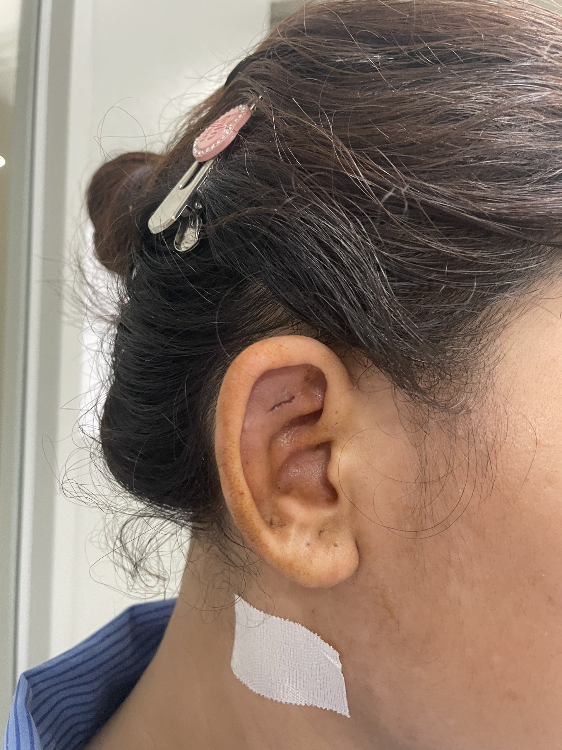 Vành tai bệnh nhân sau khi được xử trí và điều trị.