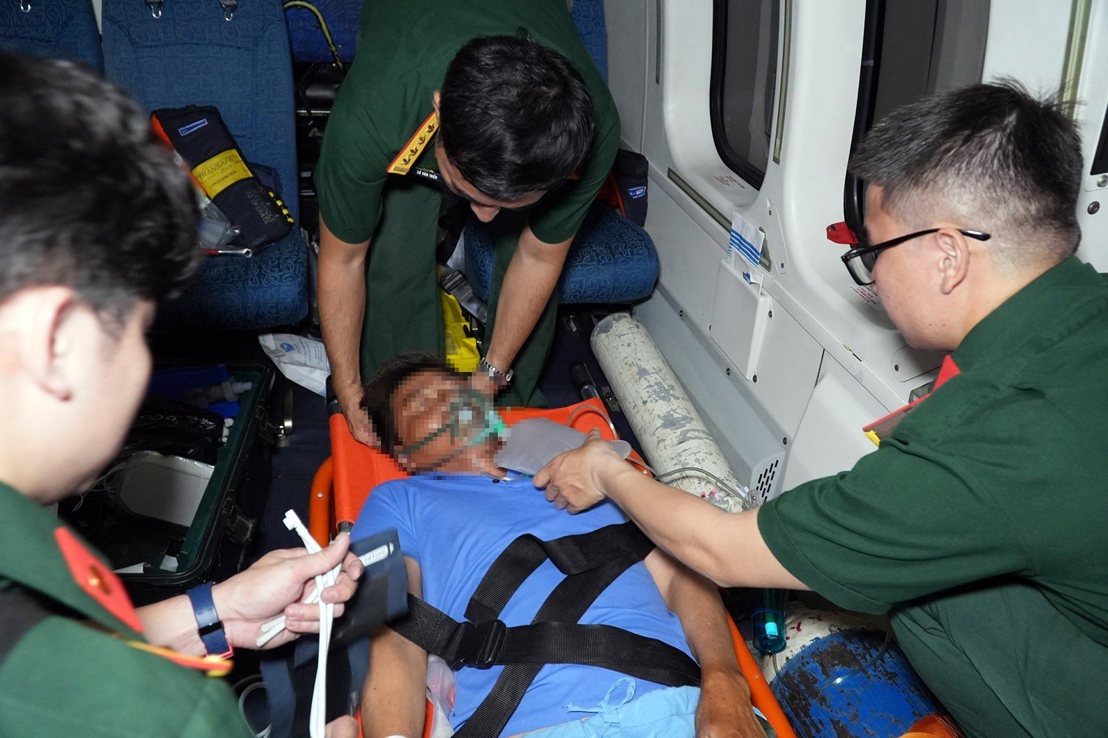 Cấp cứu bằng trực thăng đưa ngư dân bị giảm áp do lặn sâu từ huyện đảo Trường Sa về đất liền điều trị