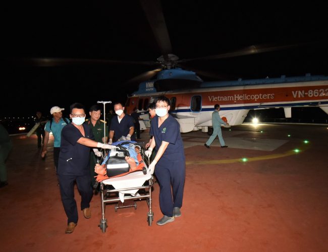 Chấp hành mệnh lệnh của Bộ Quốc phòng, lúc 18 giờ 30 phút ngày 24-3, Binh đoàn 18 điều động máy bay trực thăng EC 225 mang số hiệu VN 8622 cùng tổ cấp cứu đường không Bệnh viện Quân y 175 do Đại úy, bác sĩ Đinh Văn Hồng làm tổ trưởng tổ cấp cứu đường không xuất phát tại sân bay Tân Sơn Nhất ra huyện đảo Trường Sa. Chuyến bay đã bảo đảm an toàn tuyệt đối. Bệnh nhân được đưa khoa cấp cứu lưu và tiến hành điều trị tiếp theo.