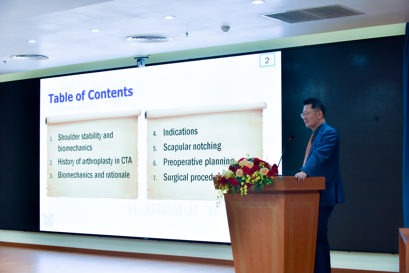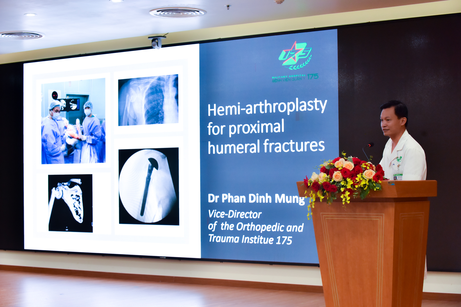Tại buổi hội thảo, các bác sĩ được cập nhật một số kỹ thuật, kinh nghiệm trong phẫu thuật thay thế khớp vai qua hai bài báo cáo: thay khớp vai đảo chiều của TS.BS. Sae Hoon Kim, Khoa Phẫu thuật chỉnh hình, Đại học Quốc Gia Seoul, Hàn Quốc và thay khớp vai bán phần, trong trường hợp gãy phức tạp đầu trên xương cánh tay của TS.BS Phan Đình Mừng – Phó Giám đốc Viện Chấn thương chỉnh hình, Bệnh viện Quân Y 175.