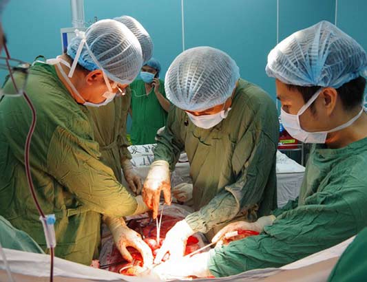 Các bác sĩ thực hiện ca mổ cứu sống bệnh nhân.