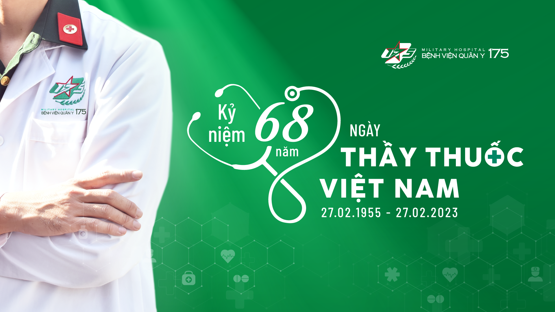 Nhân kỷ niệm 68 năm Ngày Thầy thuốc Việt Nam (27/2/1955 -27/02/2023), Bệnh viện Quân y 175 kính chúc các y bác sĩ Bệnh viện nói riêng và các y bác sĩ trong cả nước nói chung có một sức khỏe thật tốt, “sáng y đức – vững y thuật” và cống hiến hết mình vì sự nghiệp chăm sóc sức khỏe toàn dân.