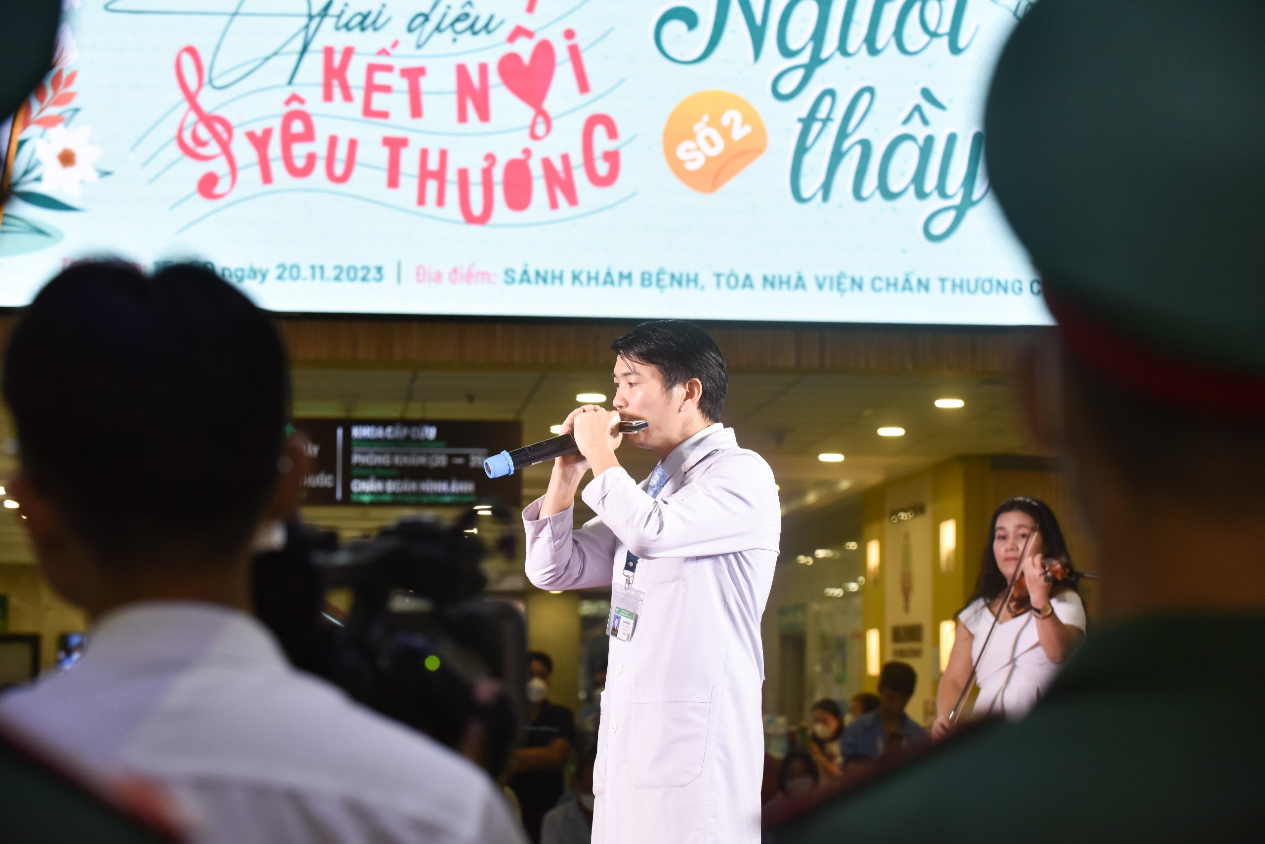 Lần đầu tiên tham gia trình diễn trong chương trình, Thiếu tá, BSCK I Bùi Văn Phúc – Khoa Phẫu thuật Chi trên hào hứng chia sẻ: “Tôi cảm thấy vô cùng xúc động khi tham gia chương trình “Giai điệu kết nối yêu thương”- số 2, đặc biệt là nhân ngày nhà giáo việt nam 20-11. Tôi xin được gửi lời tri ân đến những thầy cô, các thế hệ đi trước đã dạy dỗ chỉ bảo dìu dắt các thế hệ trẻ. Đặc biệt, với nghề Y, mỗi người bệnh cũng được coi như một “người thầy” bởi họ đã tin tưởng đem sức khỏe và cơ thể để cho các y bác sĩ điều trị, học tập trau dồi kĩ năng chuyên môn cũng như kiến thức xã hội, giúp cho các thế hệ sinh viên được học tập từ những trải nghiệm điều trị thực tế. Tôi xin được gửi lời cảm ơn sâu sắc đến những người thầy đặc biệt này”.