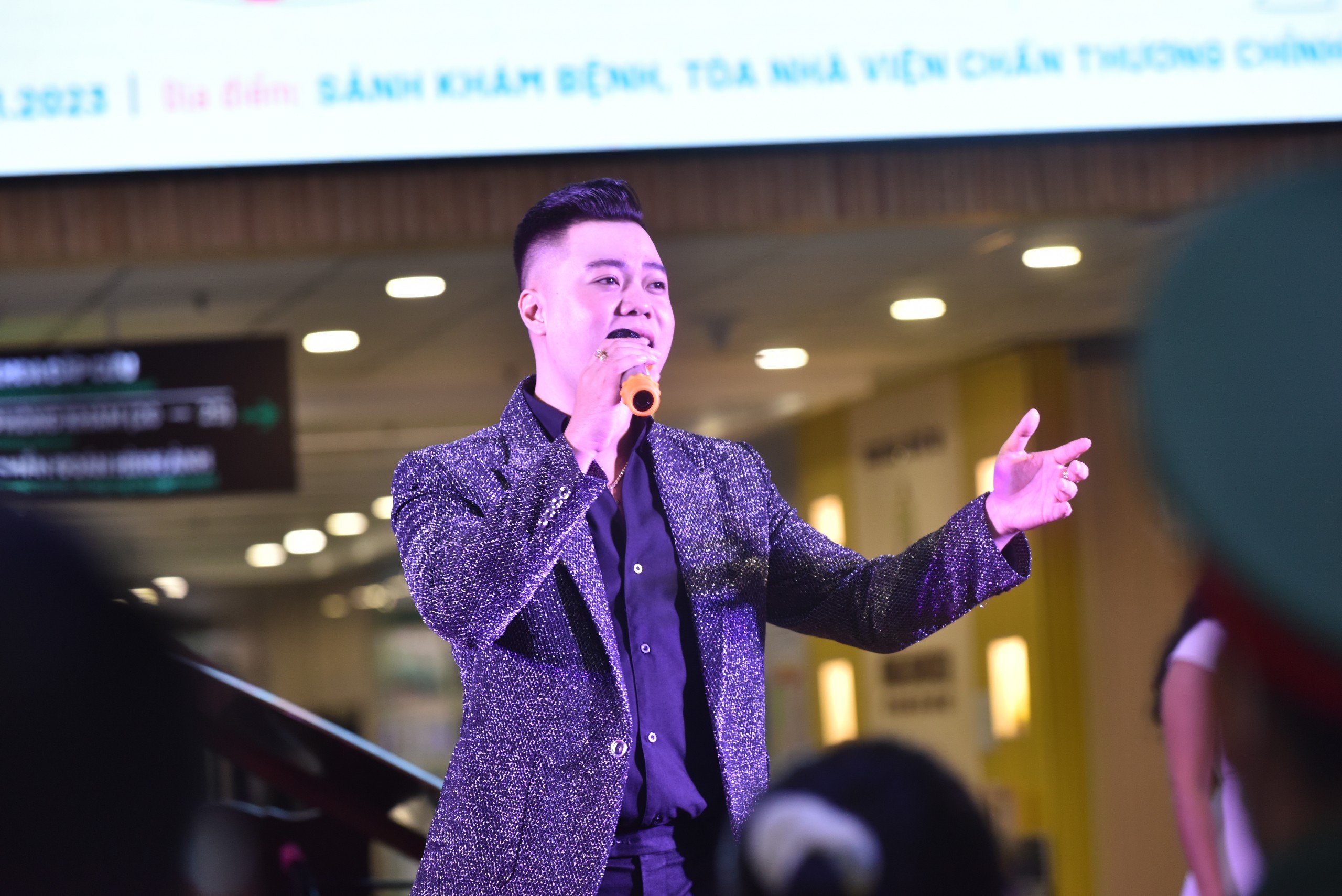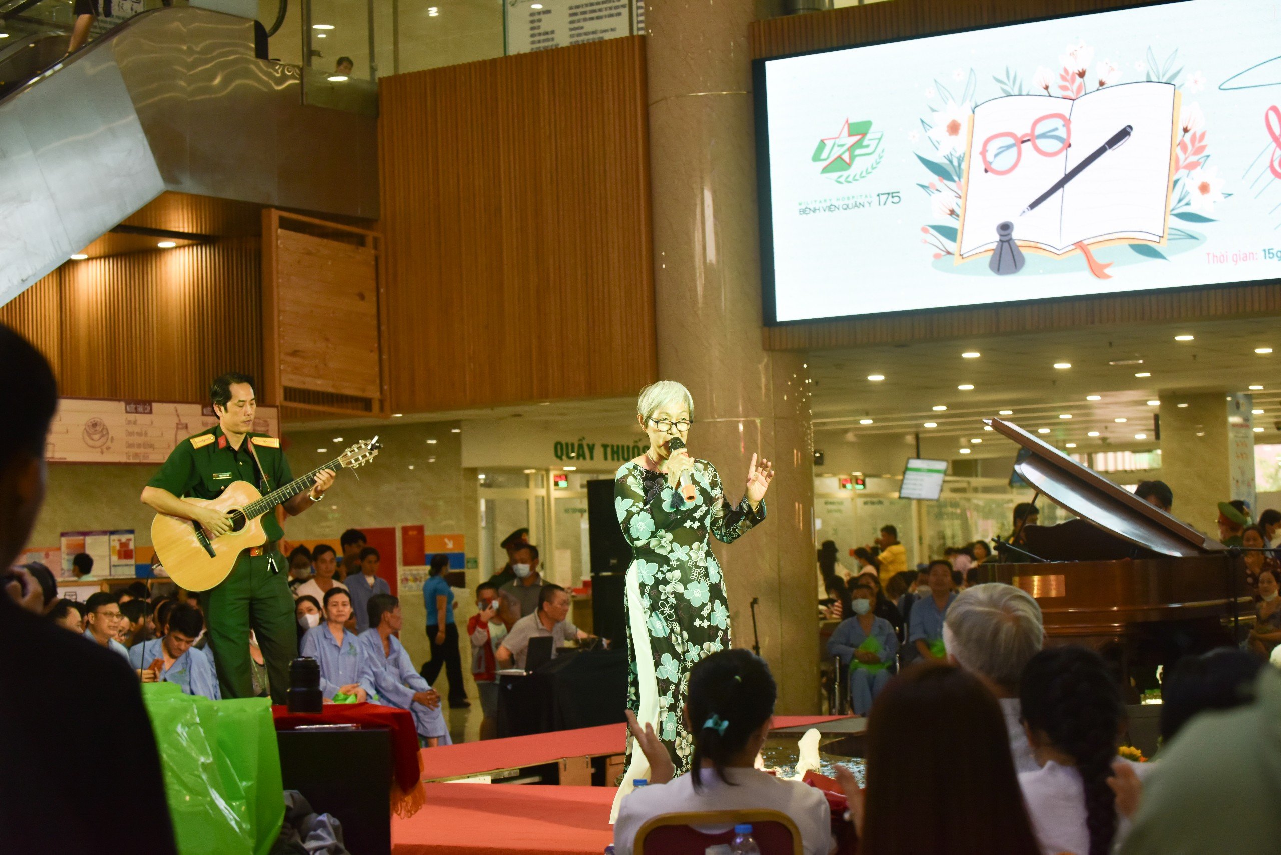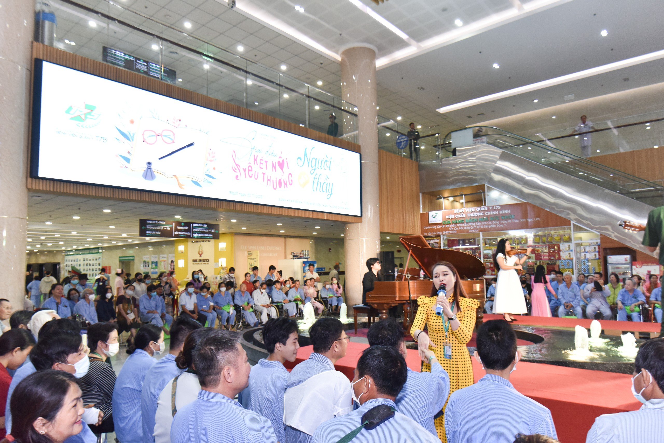 Toàn cảnh chương trình diễn ra tại sảnh khám bệnh tòa nhà Viện Chấn thương Chỉnh hình- BVQY 175.