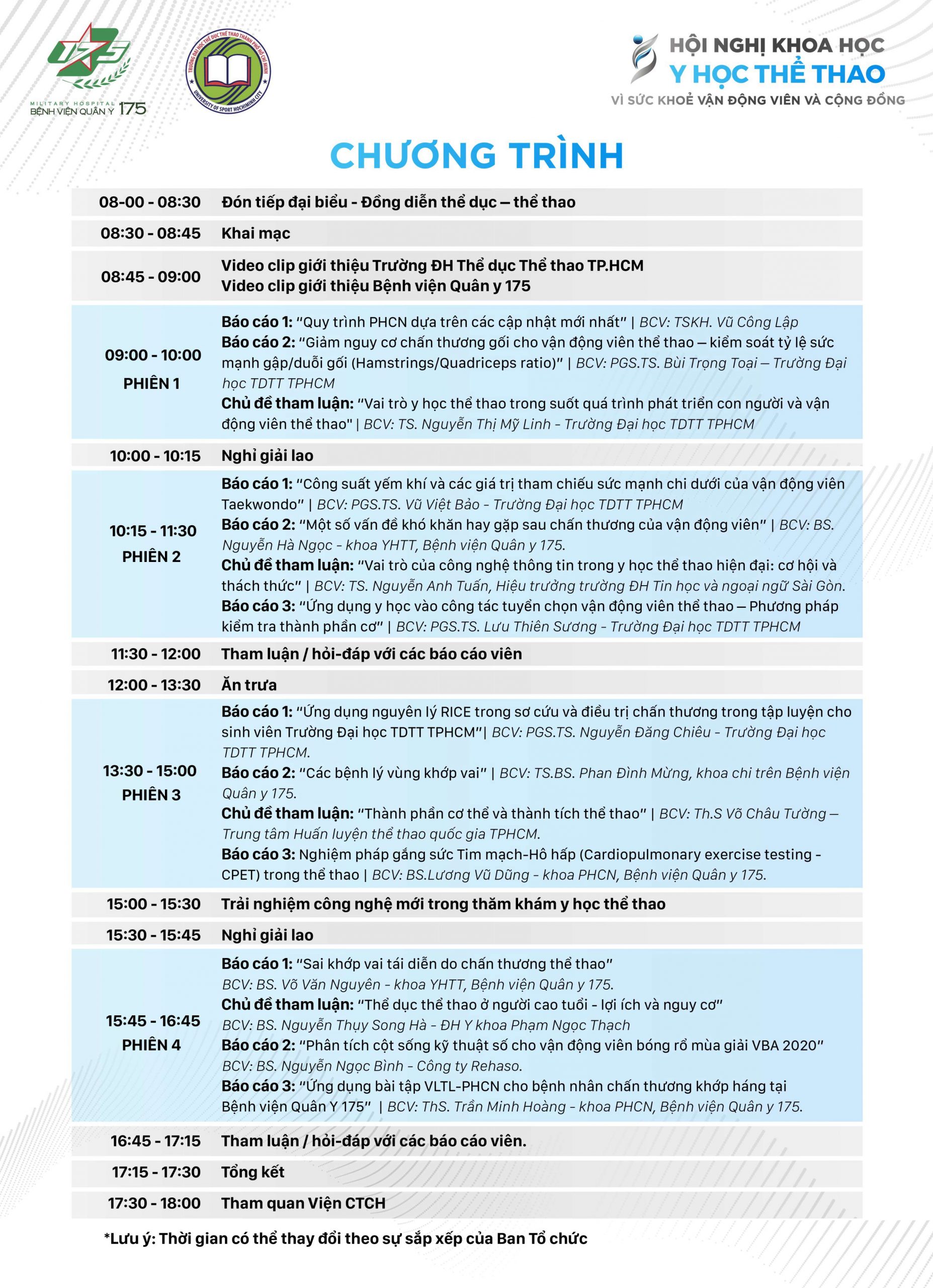 CHƯƠNG TRÌNH HỘI NGHỊ KHOA HỌC Y HỌC THỂ THAO