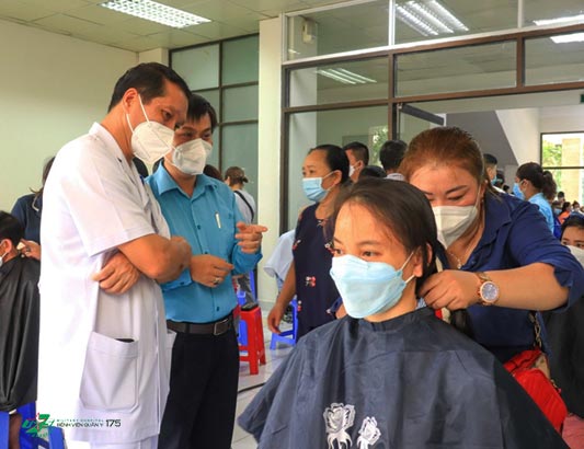 Các nhóm thiện nguyện đã thực hiện cắt tóc, chăm sóc tóc miễn phí cho người bệnh.