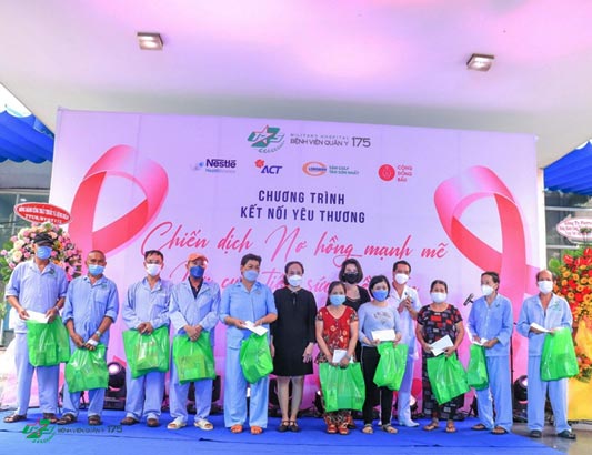 Đây là một trong những hoạt động thiện nguyện do Ban Công tác xã hội kết hợp cùng Trung tâm Ung Bướu, Bệnh viện Quân y 175 tổ chức nhằm chăm lo các bệnh nhân ung thư đang điều trị tại đây với chủ đề “Chiến dịch nơ hồng mạnh mẽ – nụ cười tiếp sức niềm tin”.