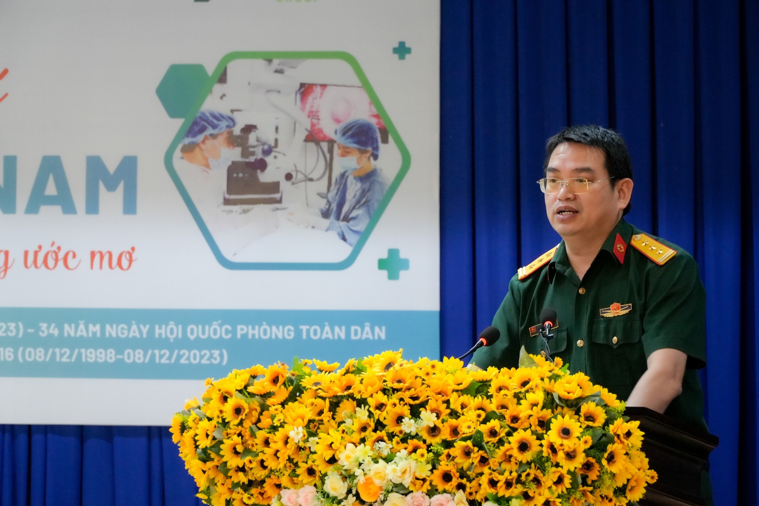 Thượng tá, TS.BS Bùi Đức Thành, Phó Giám đốc Bệnh viện Quân y 175 phát biểu tại chương trình