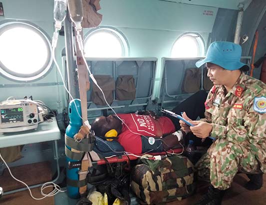 Thượng úy Đinh Văn Hồng, đội trưởng Đội AMET: Đây là ca vận chuyển MEDEVAC đầu tiên của BVDC2.3 nhưng toàn thể nhân viên BV nói chung và đội Cấp cứu đường không nói riêng đã tiến hành theo quy trình thuận lợi, quá trình vận chuyển bằng trực thăng Mi-8 bệnh nhân ổn định, bàn giao bệnh nhân cho Bệnh viện level 2+ của Ấn Độ an toàn. Chúng tôi cảm thấy rất vui vì đã đóng góp vào thành công bước đầu của BVDC 2.3 trong quá trình triển khai thay thế BVDC2.2. Đây là khởi đầu thuận lợi để BVDC2.3 cũng như đội Cấp cứu đường không sẽ tiếp tục hoàn thành tốt các nhiệm vụ tiếp theo trong thời gian tới.