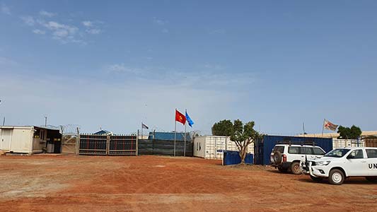 8 sáng ngày 3/5/2021( 13g giờ VN) , lá cờ Tổ quốc Việt Nam và lá cờ Liên Hợp Quốc đã được đồng chí Trung tá Trịnh Mỹ Hoà – Giám đốc và đồng chí Thiếu tá Trần Đăng Khoa – Phó giám đốc chuyên môn Bệnh viện Dã chiến cấp 2 số 3 (BVDC 2.3) kéo lên trước cổng mới của đơn vị.